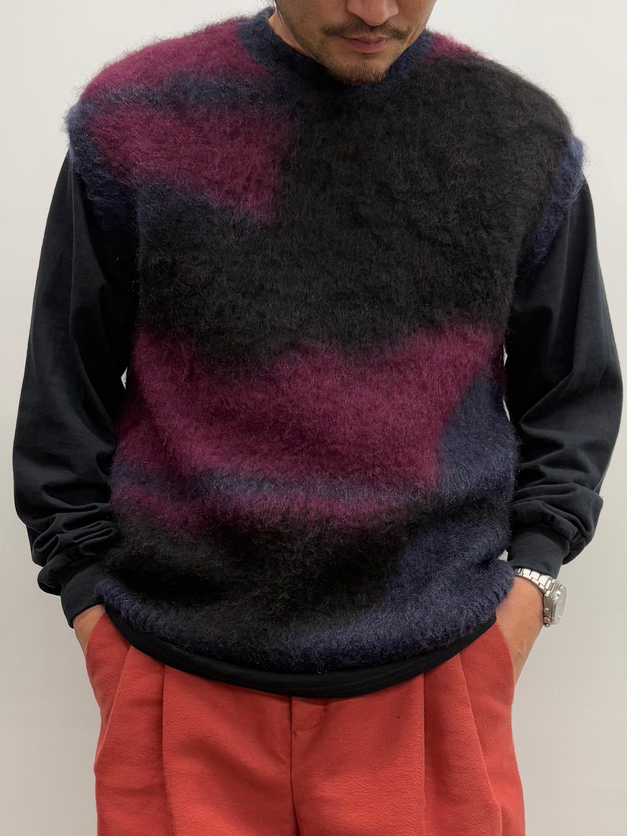 【 BLUE BLUE JAPAN 】シャギーグラデーション ニットベスト / Dark Navy