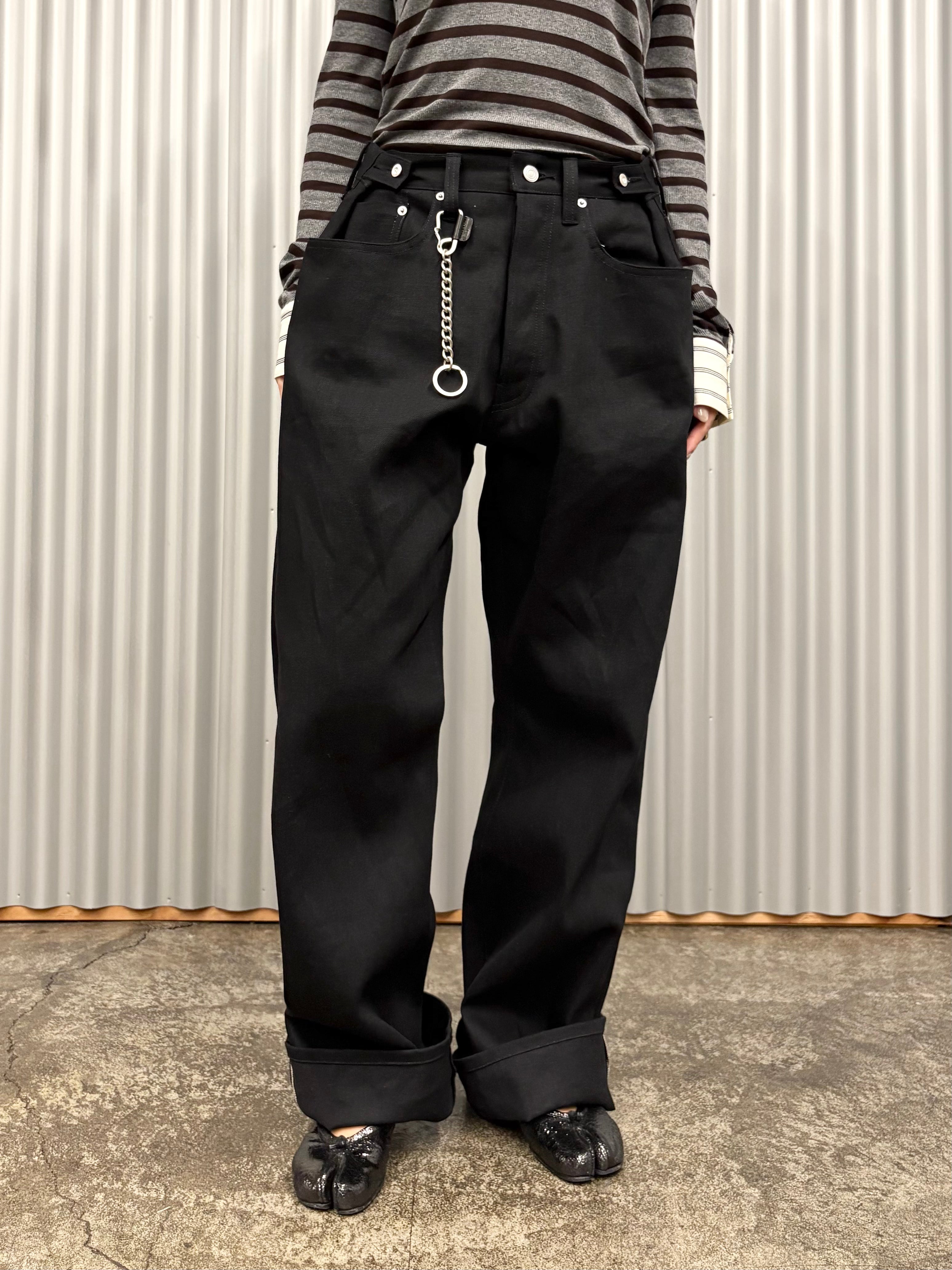 【ES : S】SUPER WIDE CINCH BACK JEANS / Black Rigid