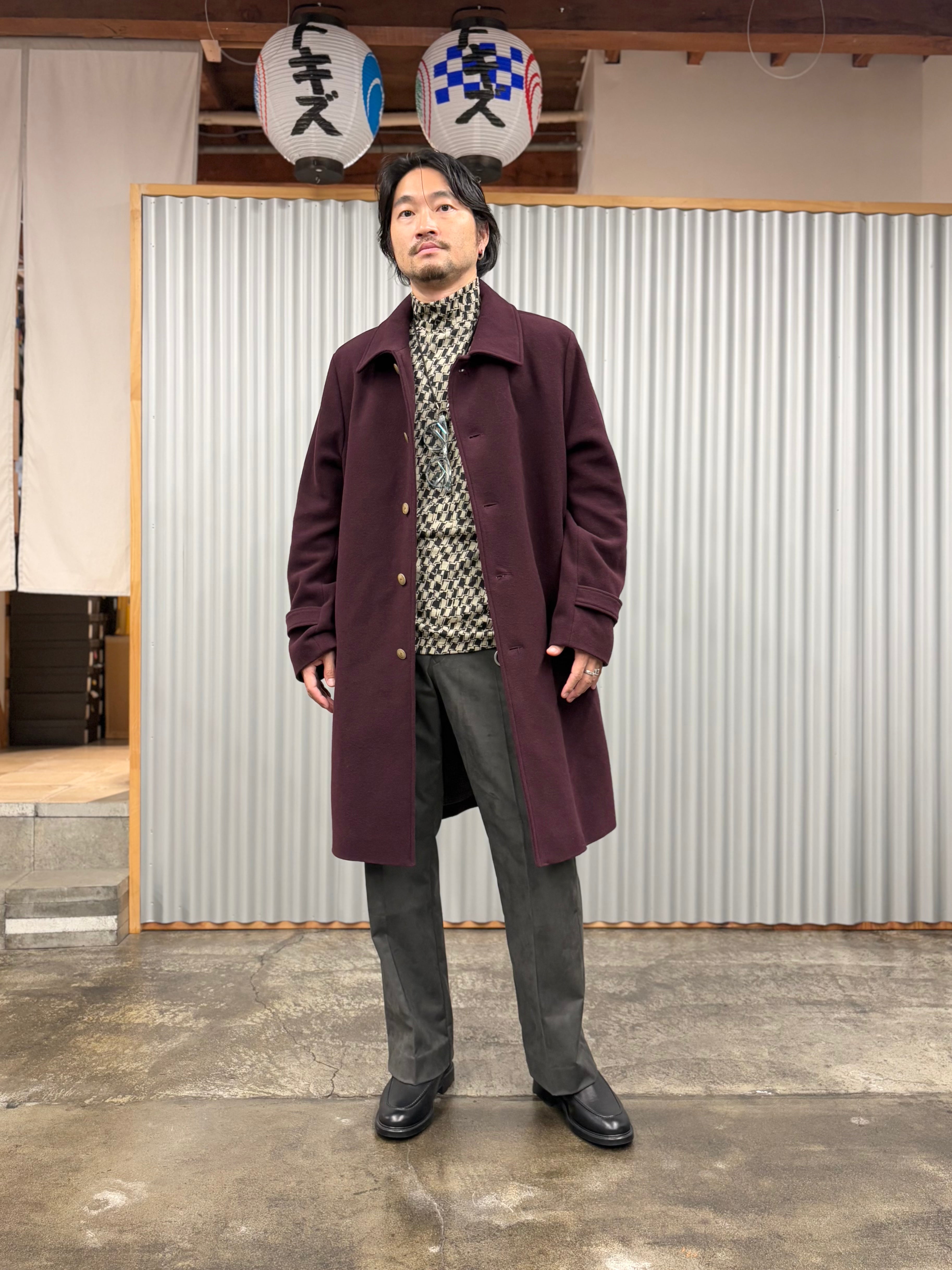 ゆったりとしたシルエットのステンカラーコート。