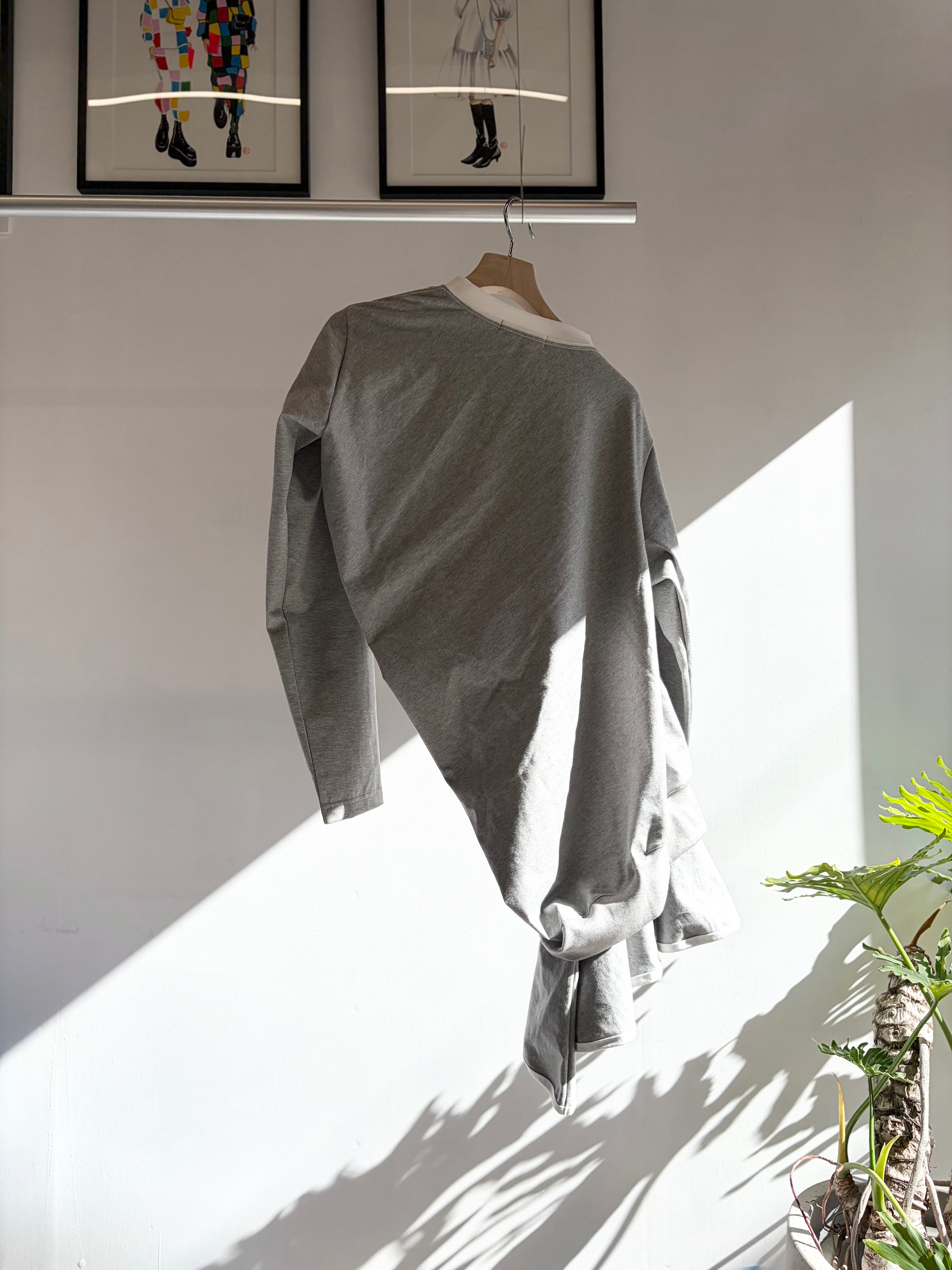 着⽤すると肩からウエストにかけてドレープが作られます。フロントにのみ取り付けられているスカートがポイントです。