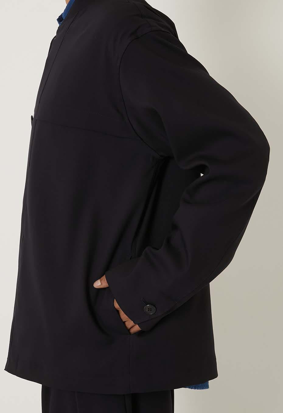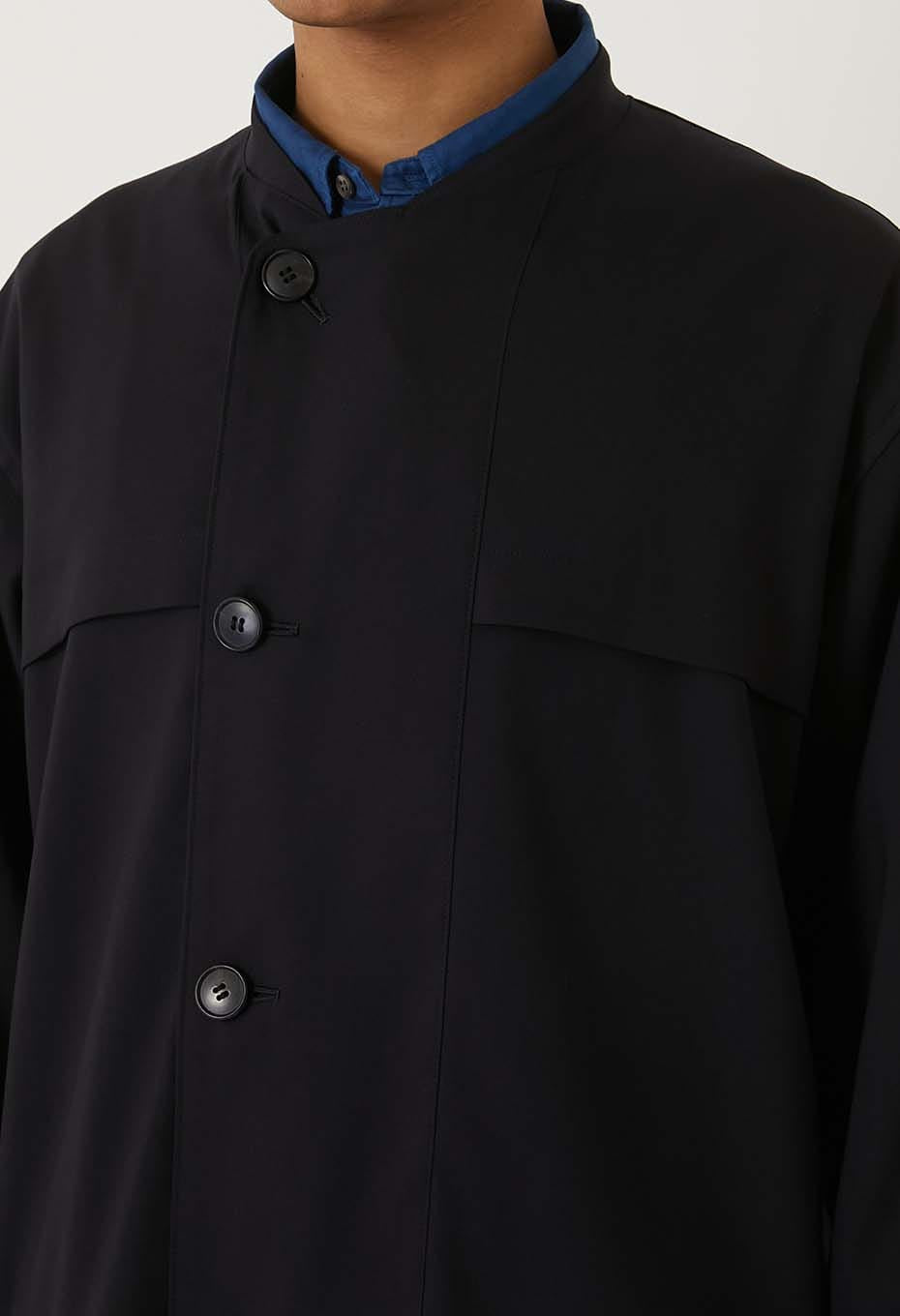 ワークジャケットのような雨除けディテールや袖口のつくりがポイント。シルエットは軽くて着心地のいいボックススタイルです。