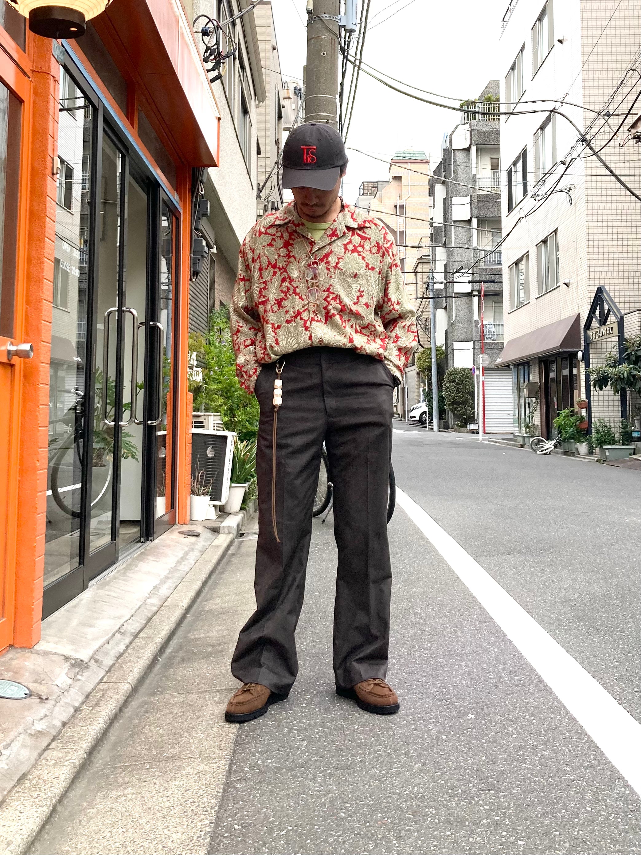 緩やかに広がるので、フレアパンツとしてはとても使い勝手が良く、様々なスタイリングに自然と馴染むのが魅力です。