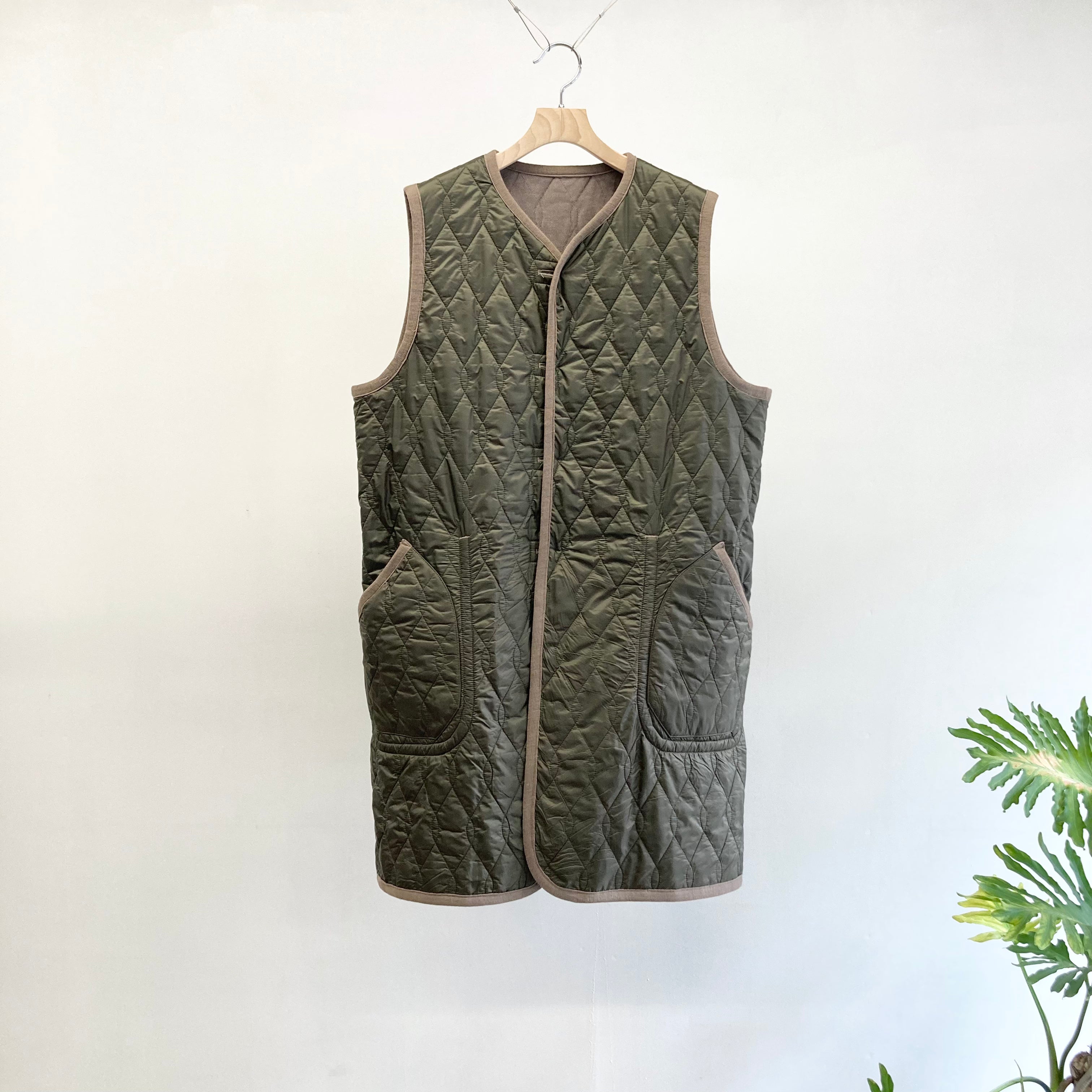 【m's braque】SILK-LOFT QUILTING CAR LONG VEST / Mocha Mesh × Khaki Trim