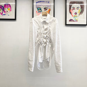 【 HOMMENA 】TOO BIG FRILLED SHIRT - LACE - / Off White