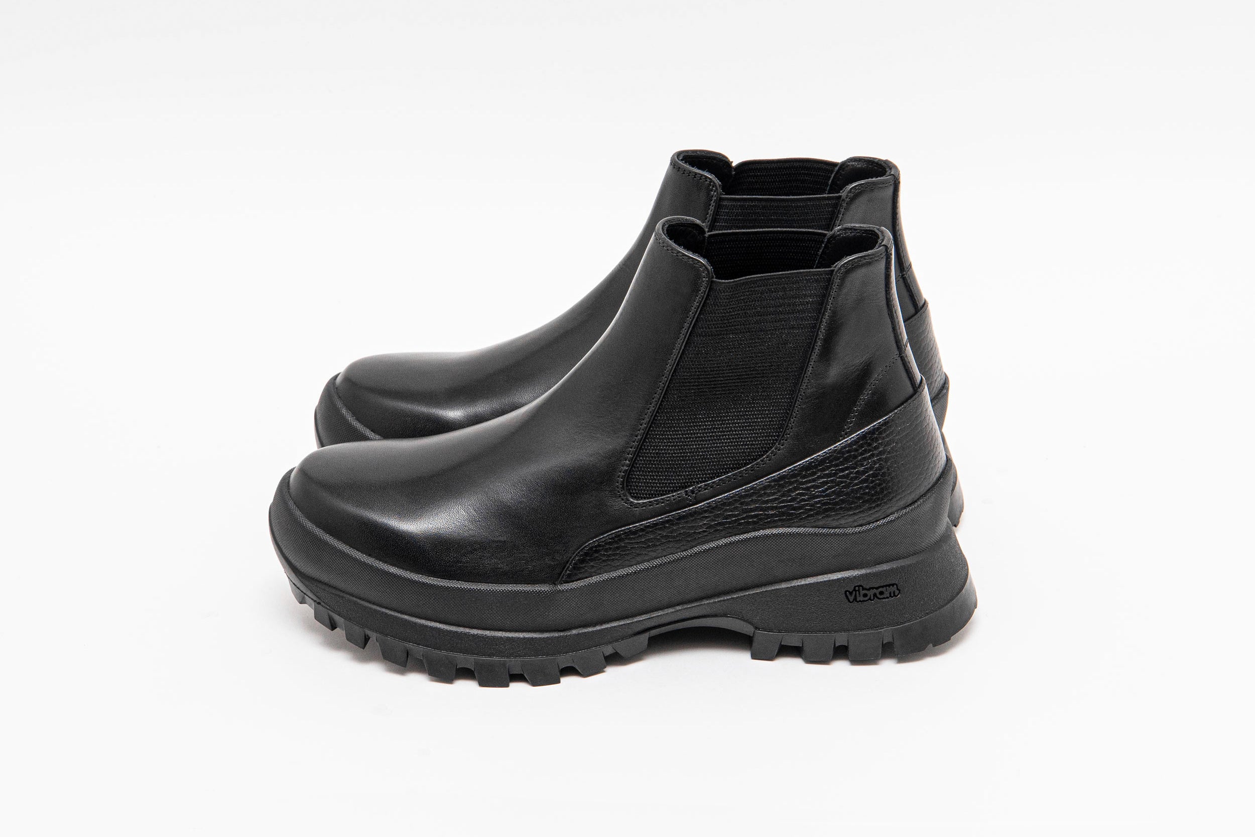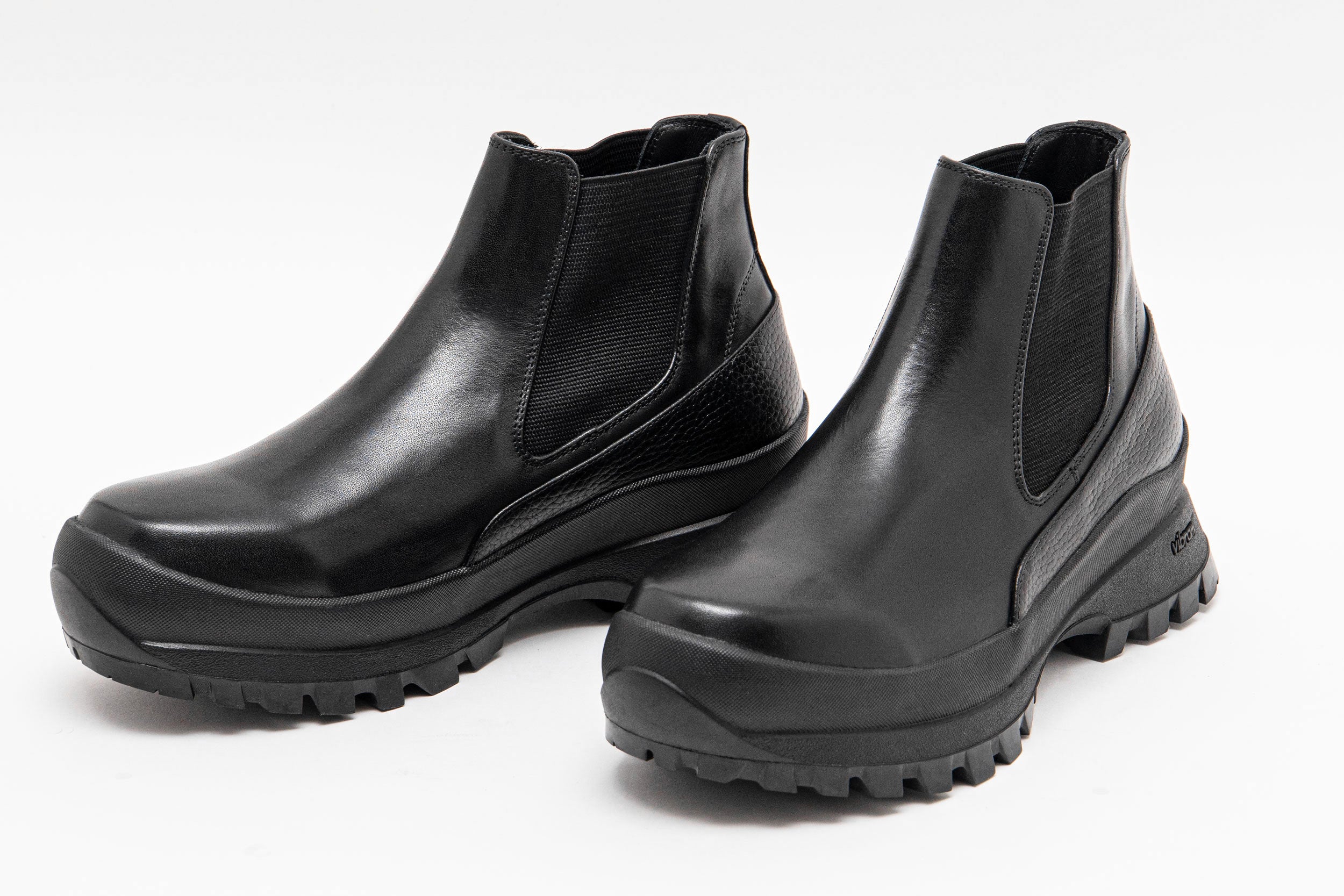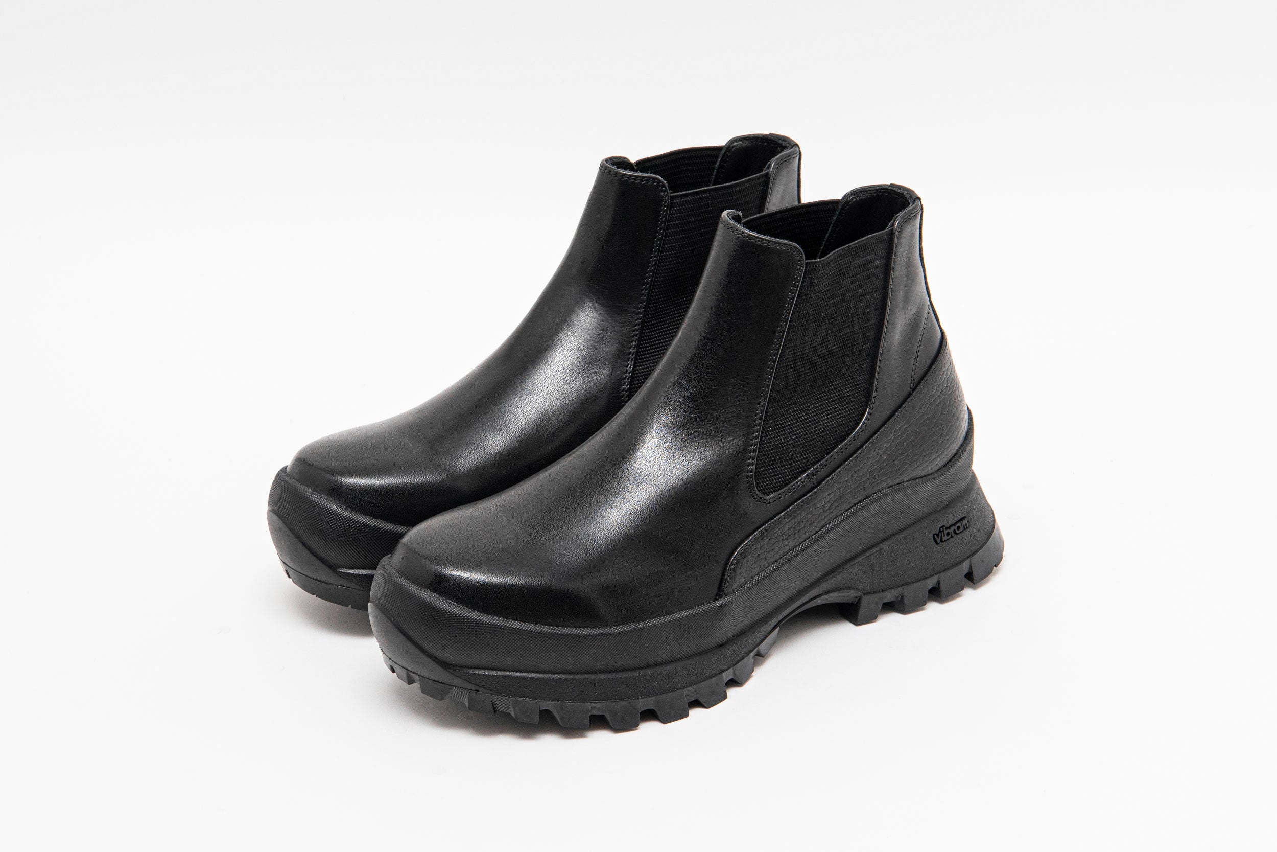 ミリタリーシューズに見られるディテールを取り入れて製作されたサイドゴアブーツ。