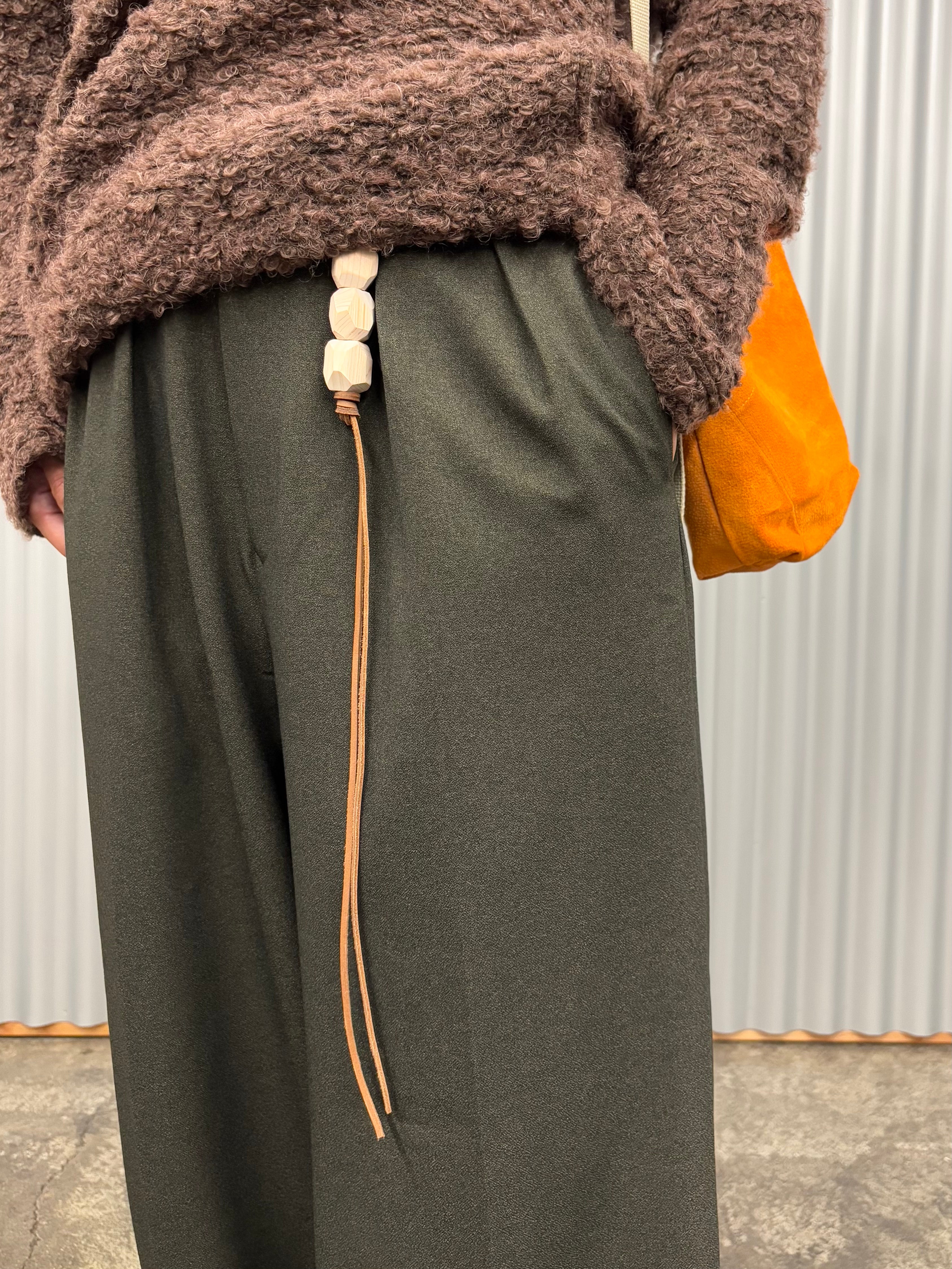 丸みを帯びた真鍮製のカラビナを使用し、長めの革紐はカットすることで自由にアレンジが可能です。