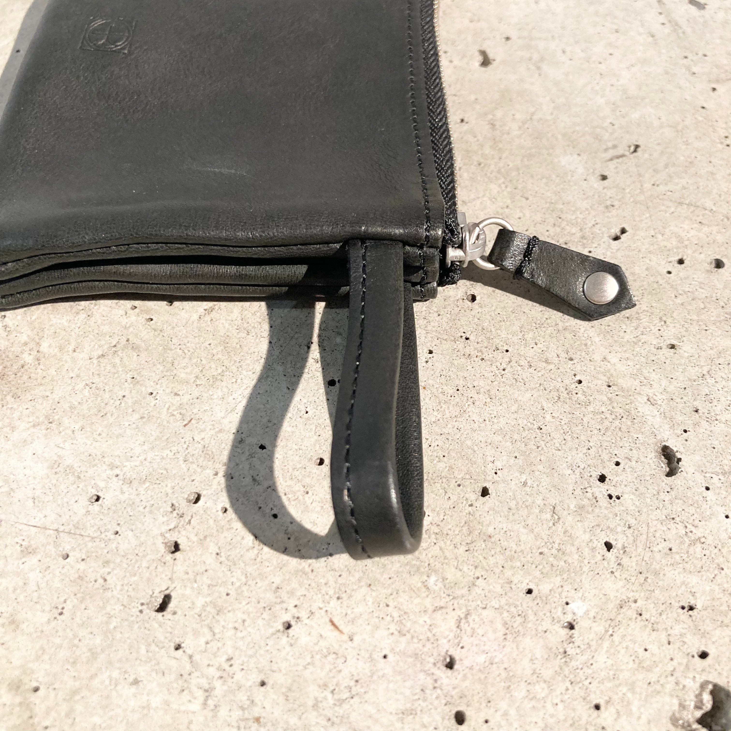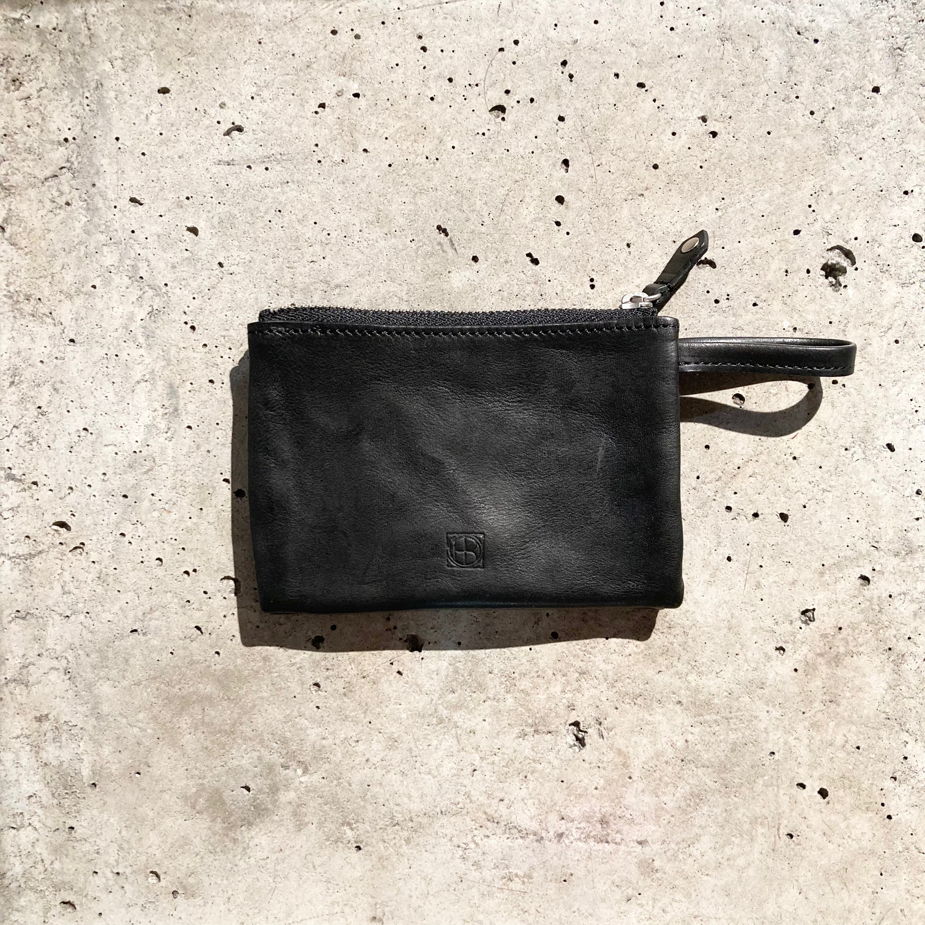 【hobo】PARTITION ZIP MINI POUCH - HORSE LEATHER - / Black