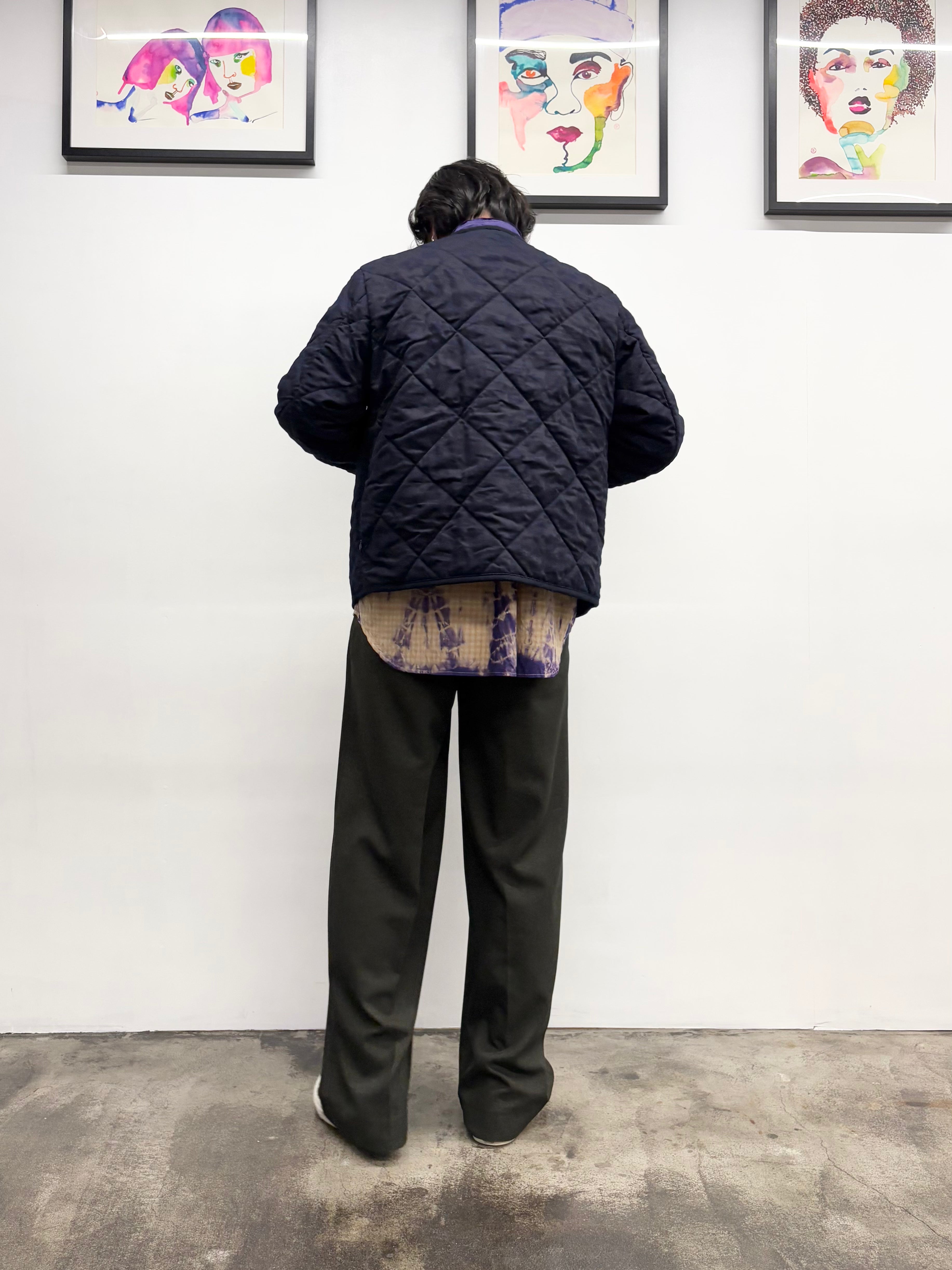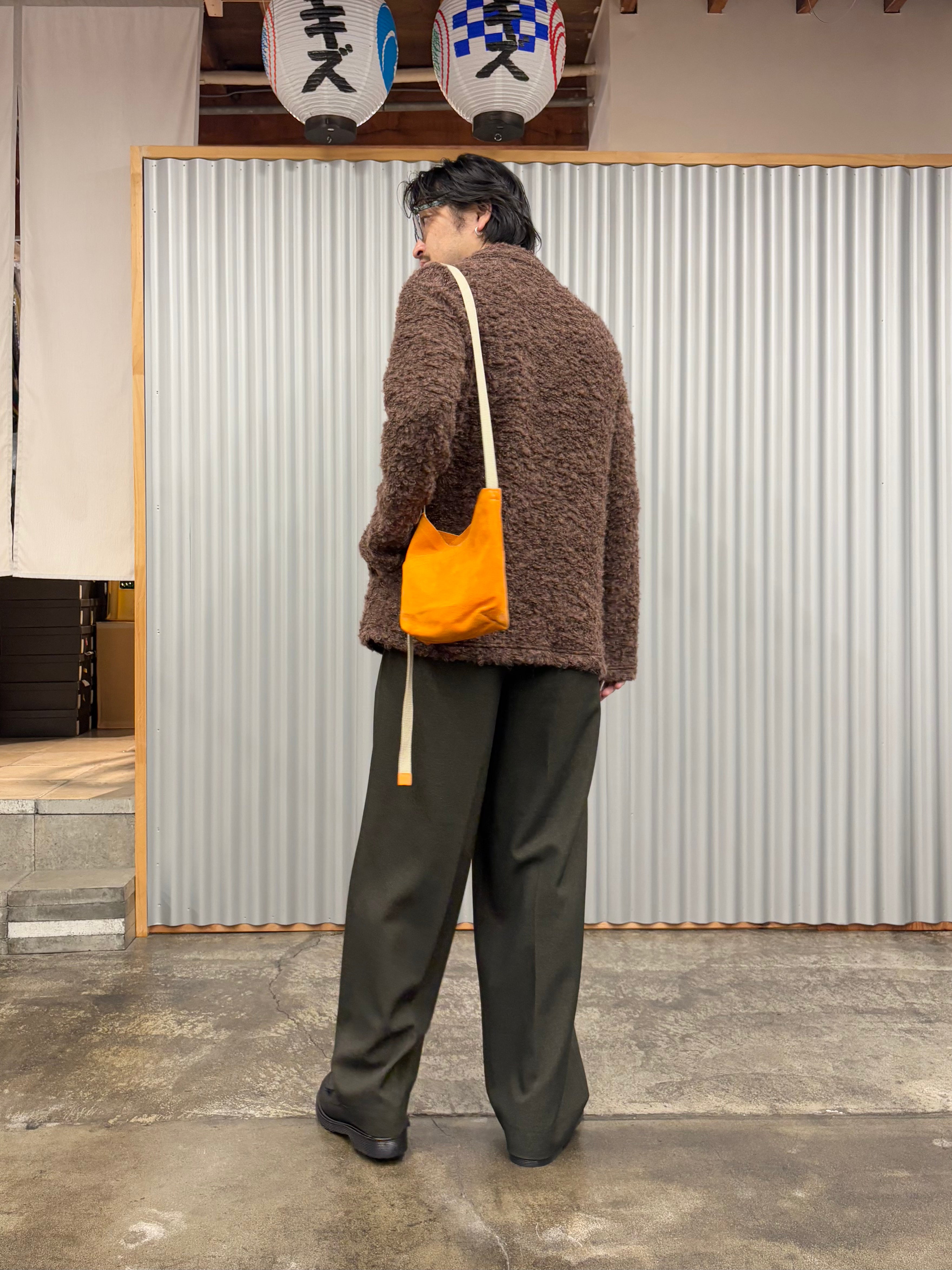 2インタックを施し、スラントポケットへと続くダーツも美しい腰回り。ワタリの太さに対してスッキリとしたウエストやシックなマーベルトなど、ドレスパンツのディテールを取り入れながらも、センタークリースを入れずカジュアルにも落とし込めるパンツにデザインされています。
