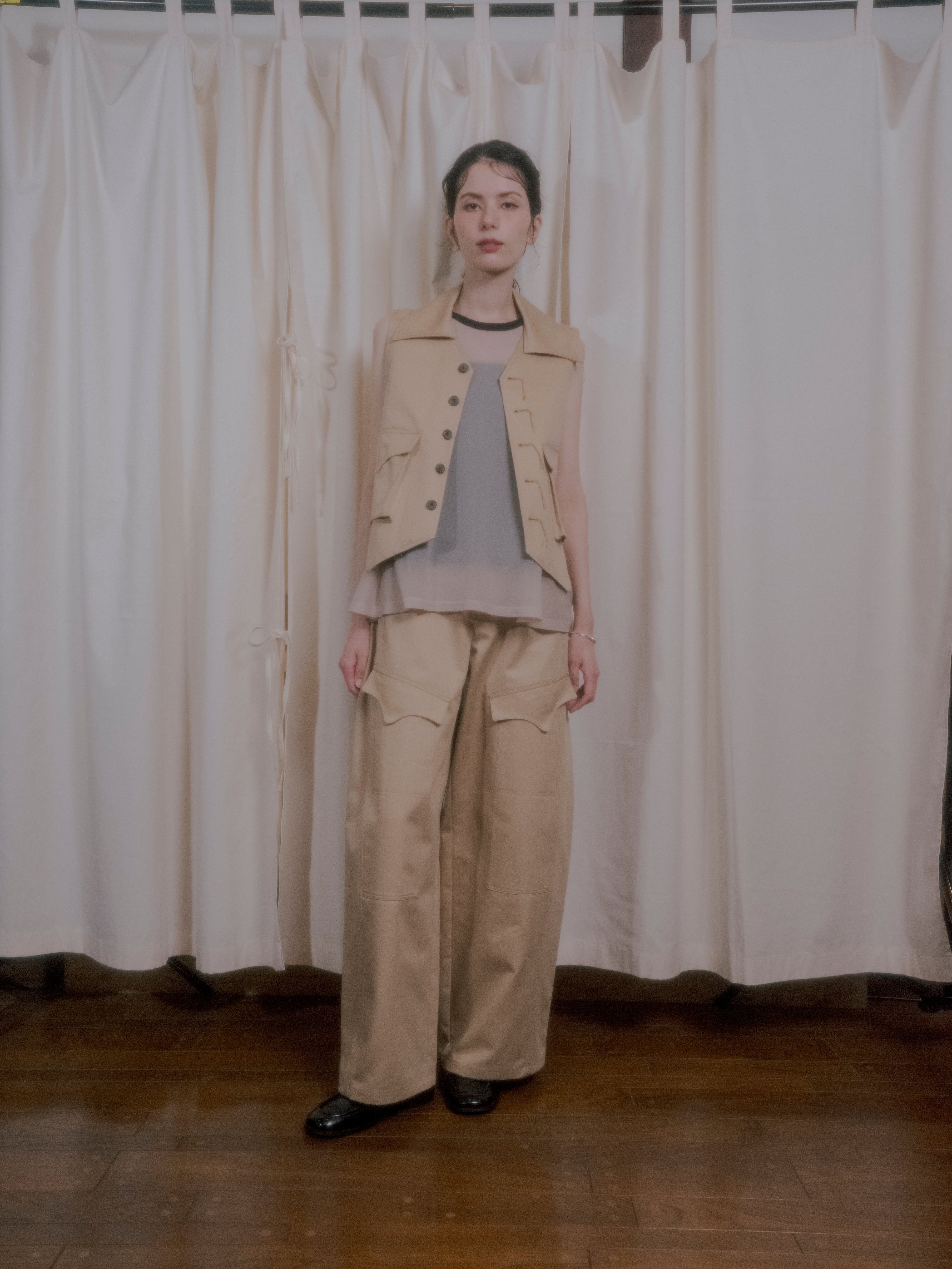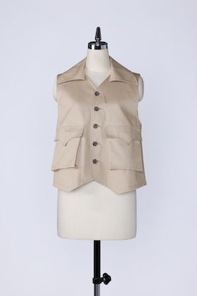 【RURI W. / ルリ】SPLIT-COLLAR CHINO VEST / Beige