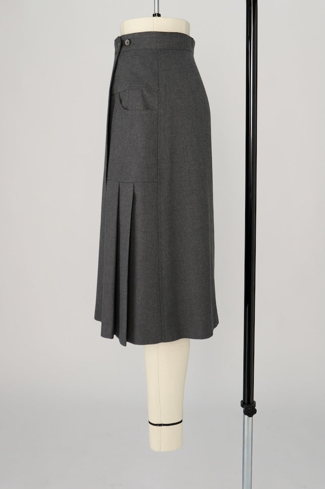 【RURI W. / ルリ】WRAP SIDE PLEAT SKIRT / Charcoal Grey