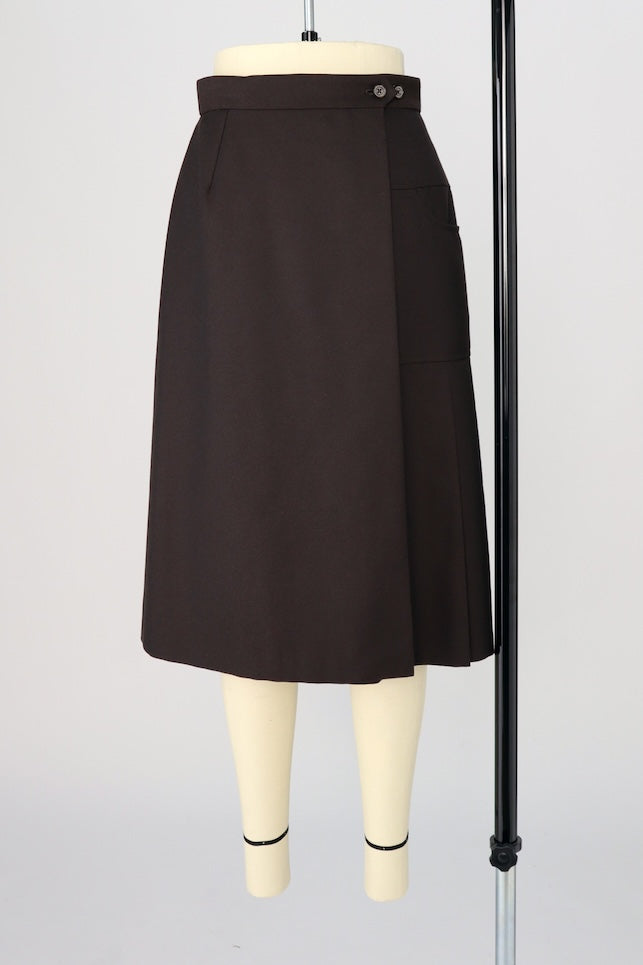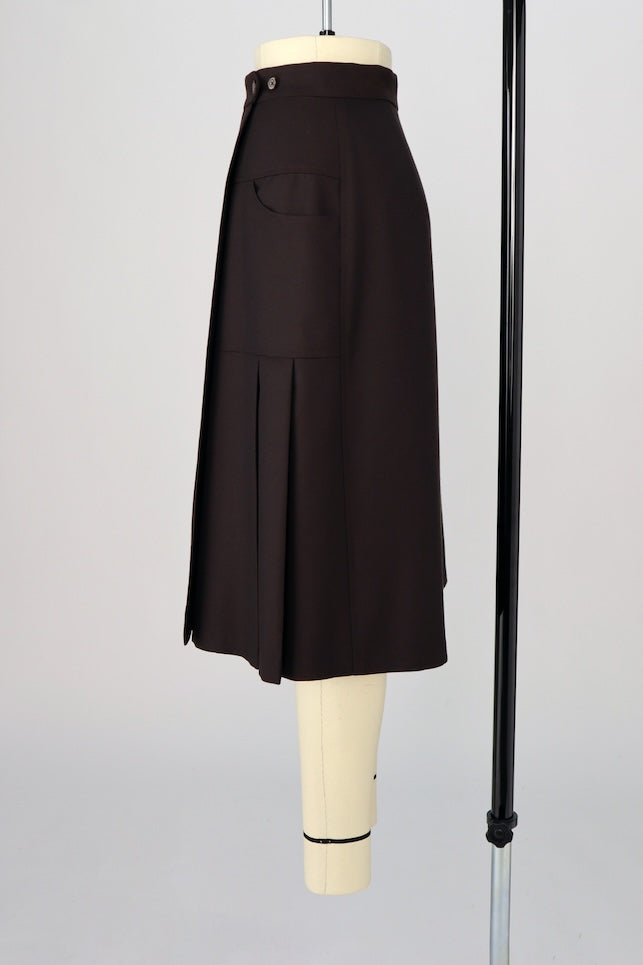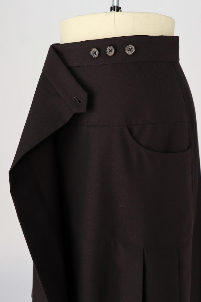 【RURI W. / ルリ】WRAP SIDE PLEAT SKIRT / Chocolate Brown
