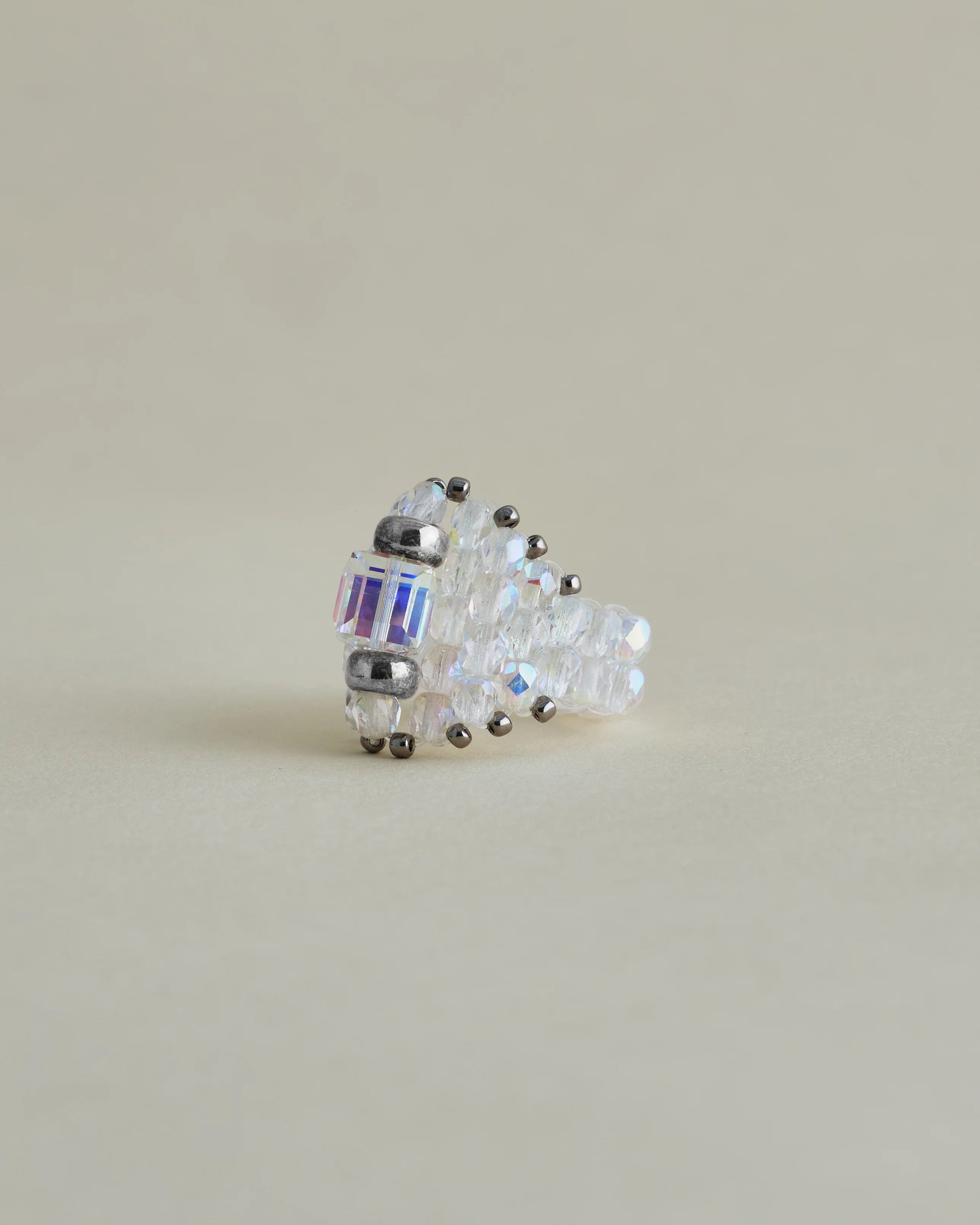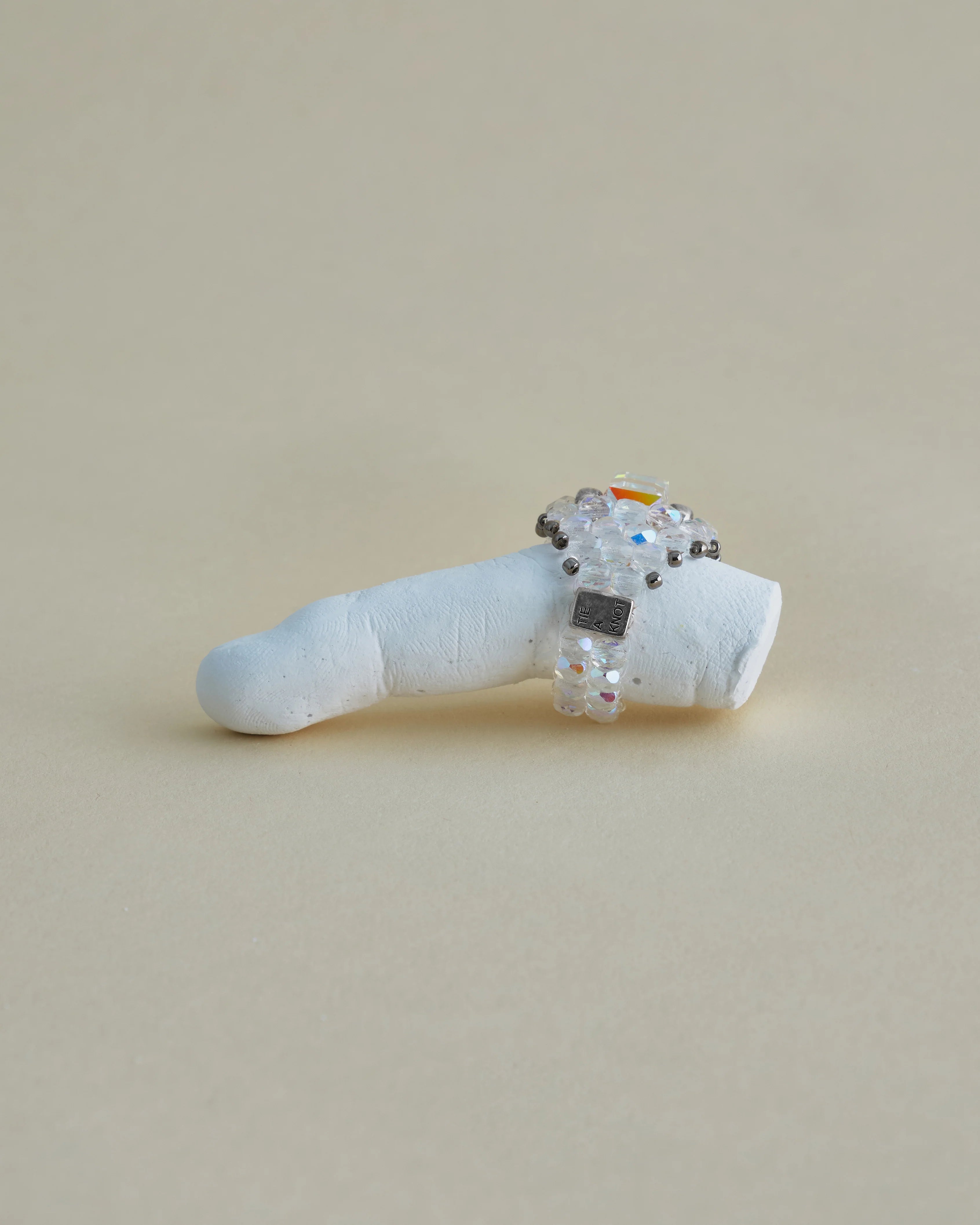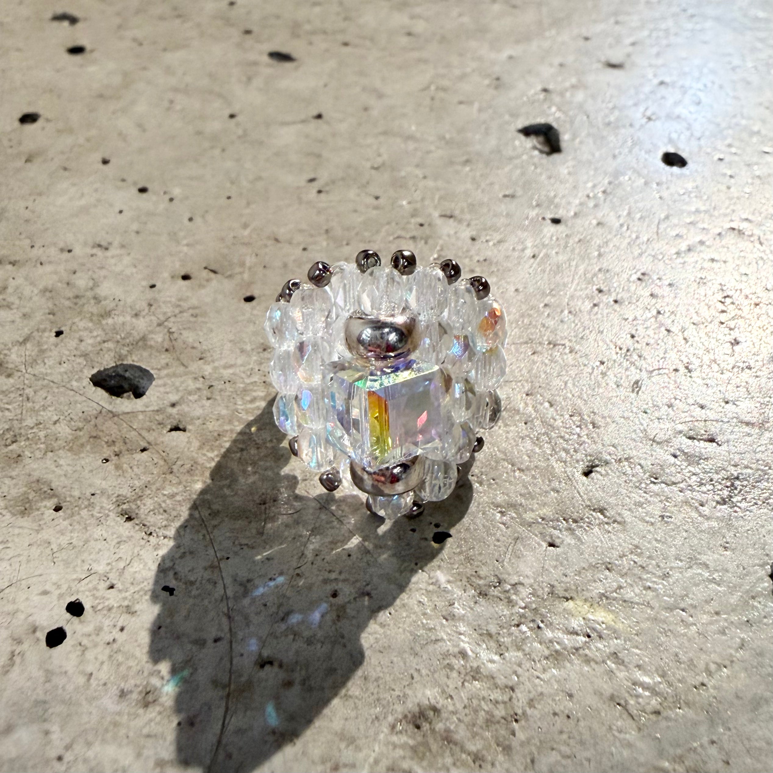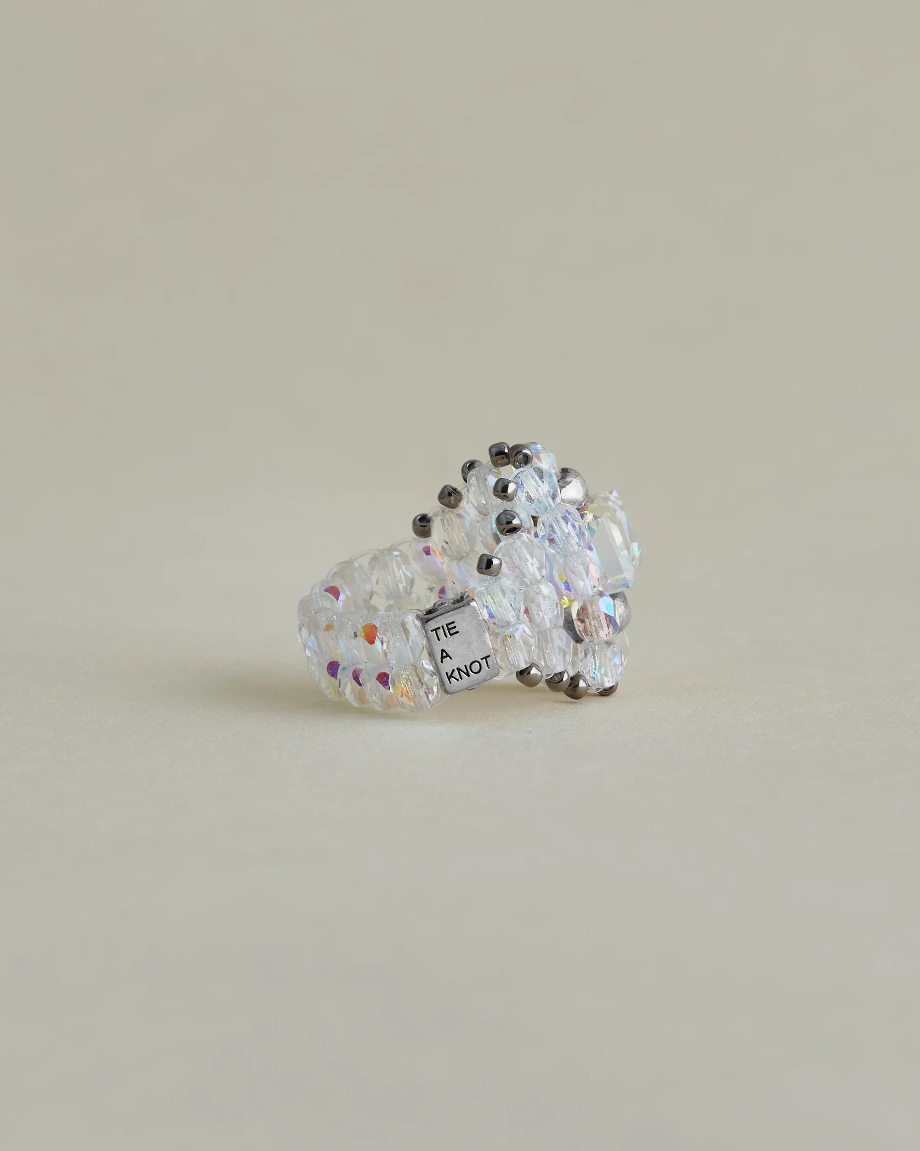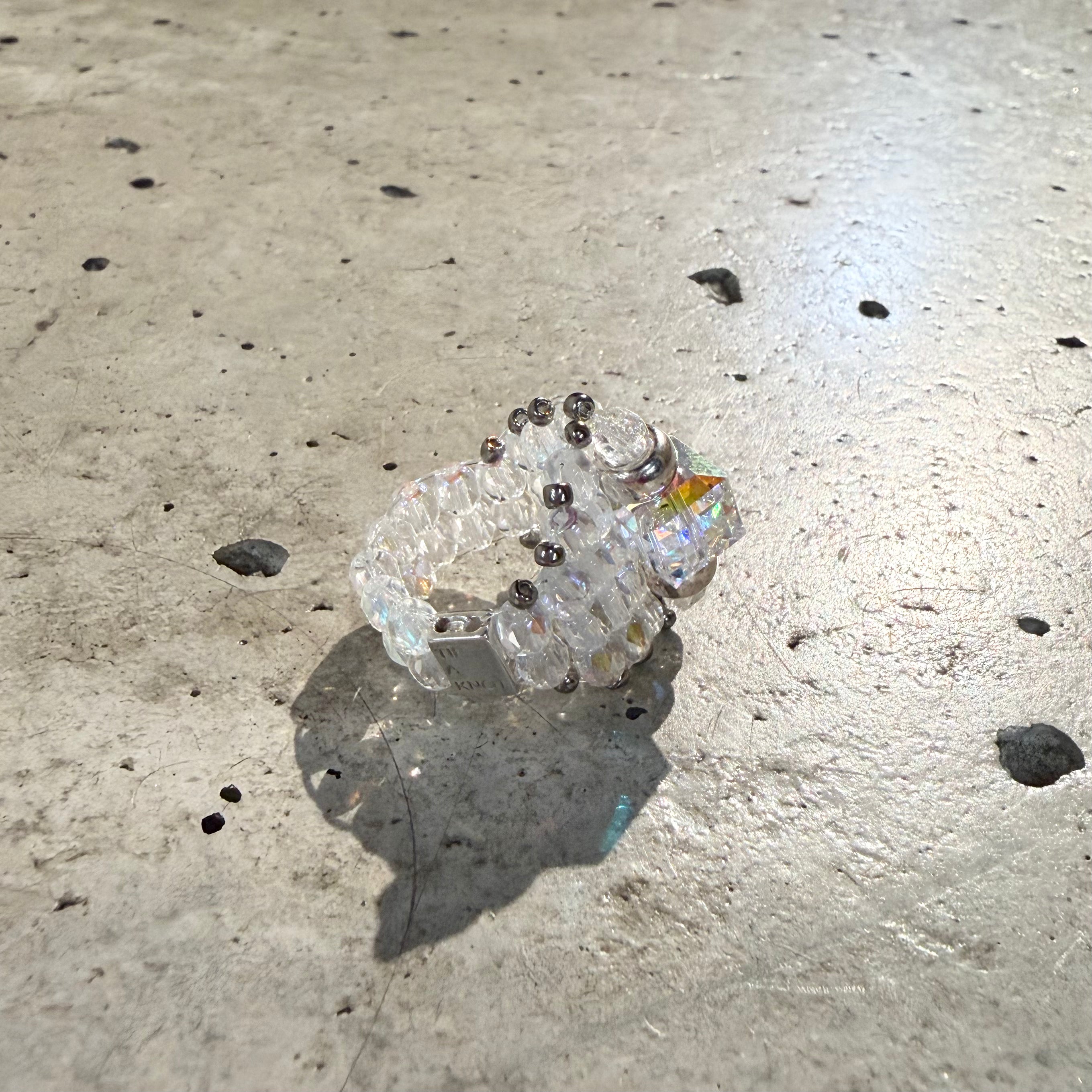 【 TIE A KNOT 】CRYSTAL BEADS RING with SILVER 925 / Clear × Clear #9