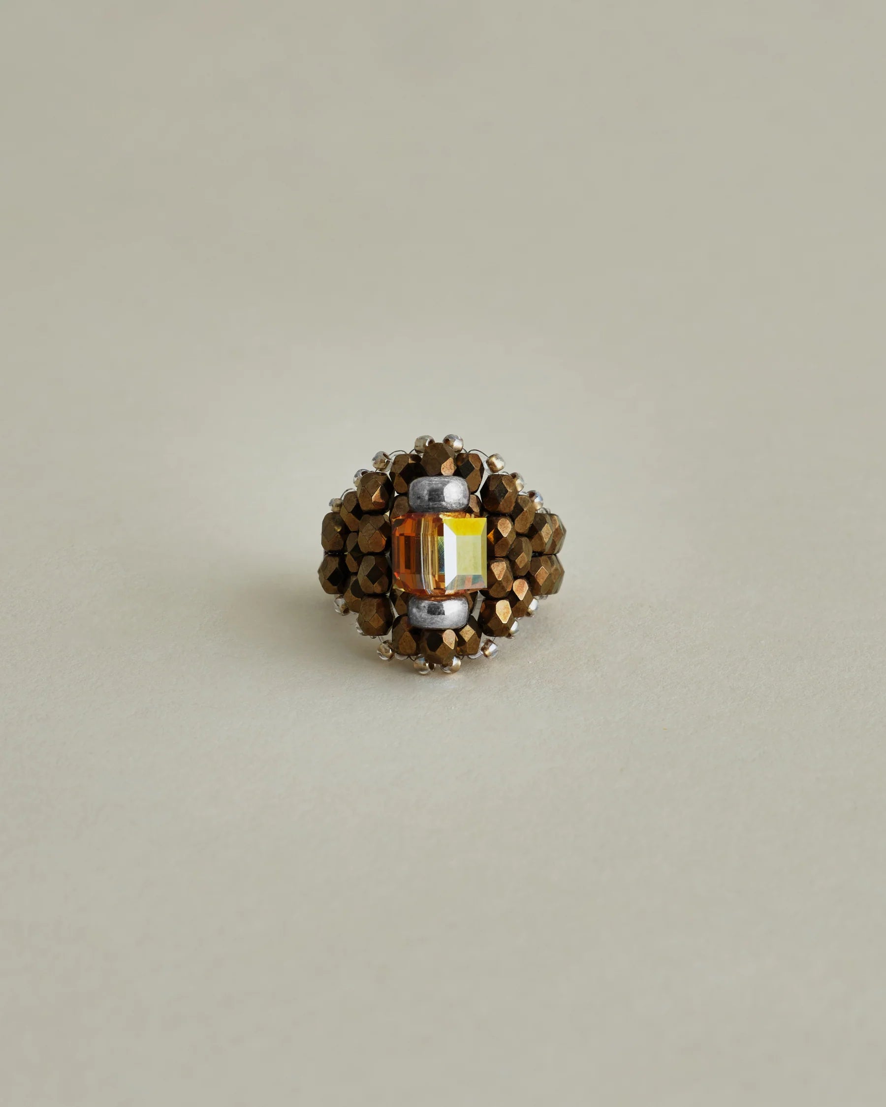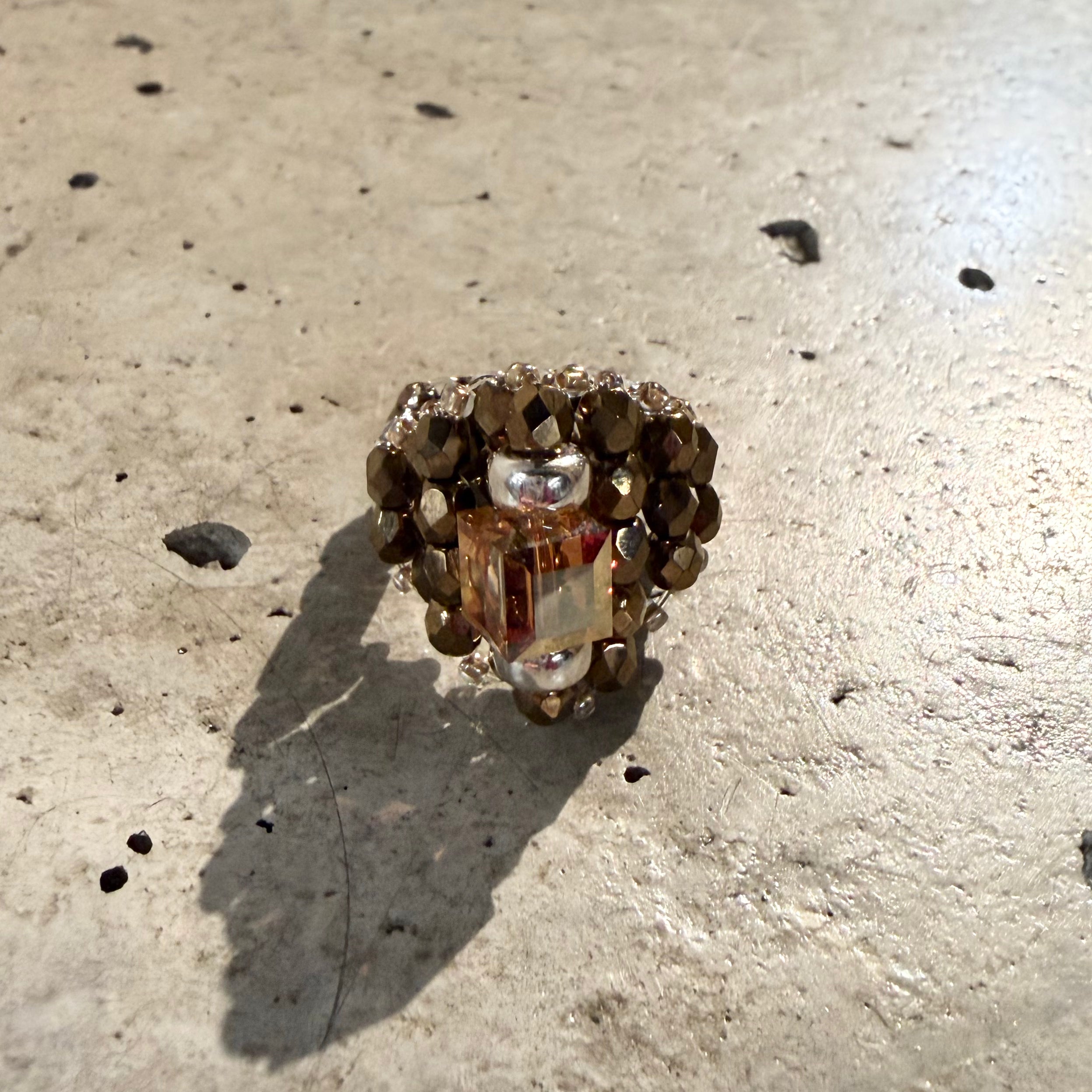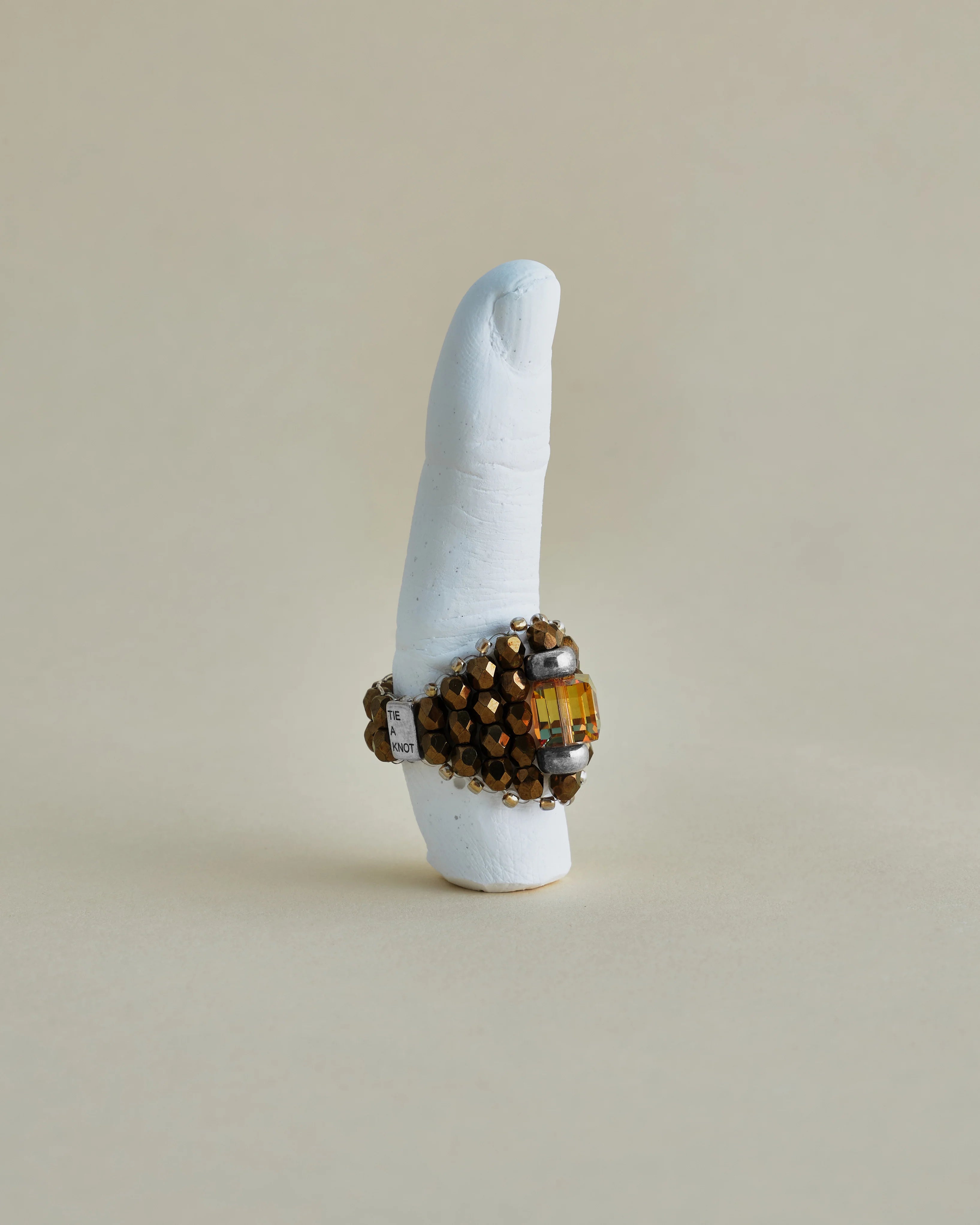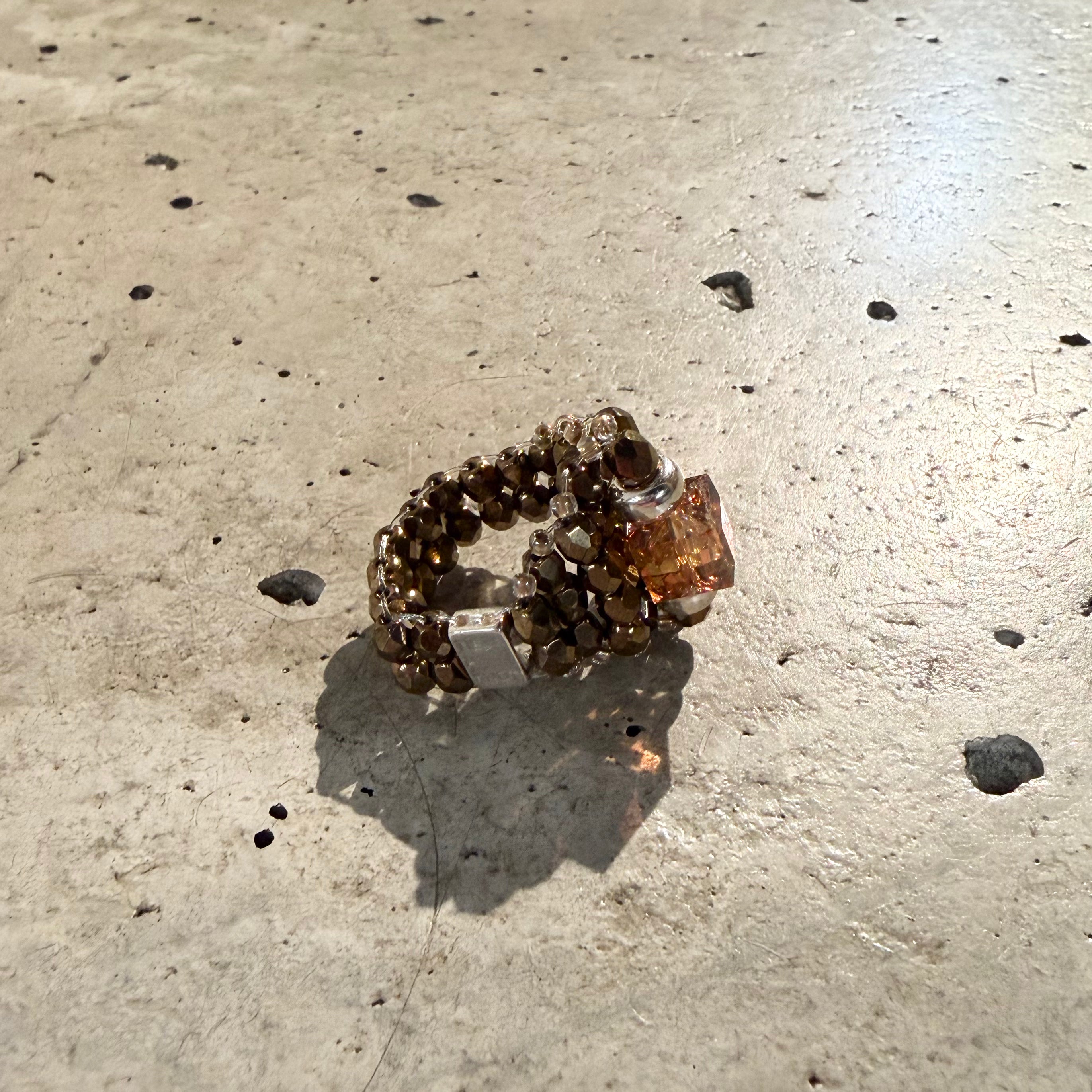 【 TIE A KNOT 】CRYSTAL BEADS RING with SILVER 925 / Sunshine × Bronze #4