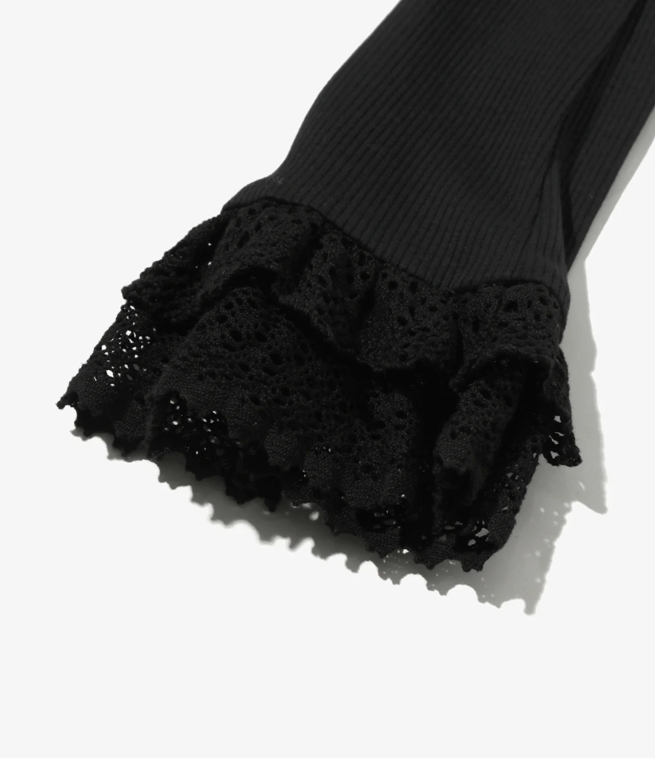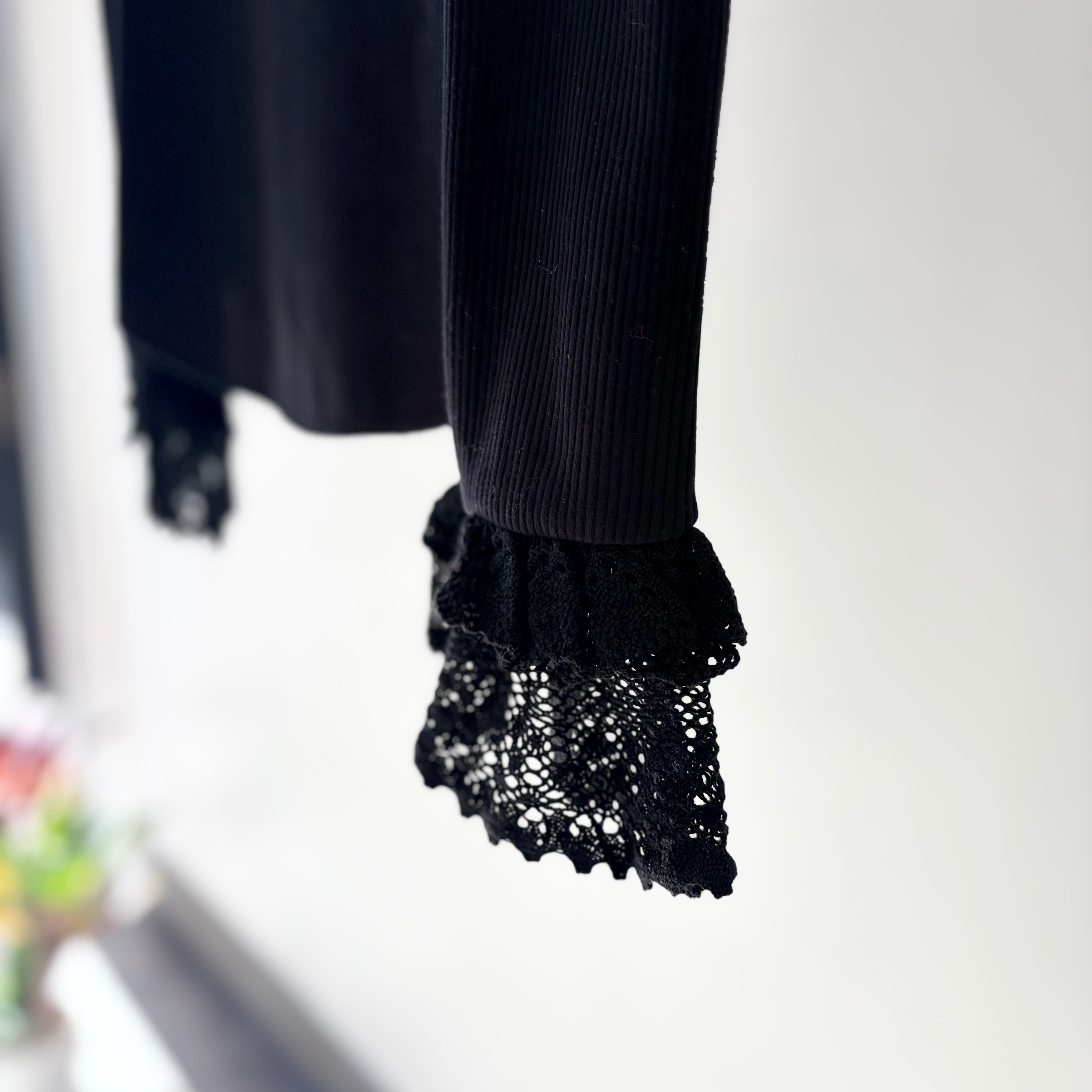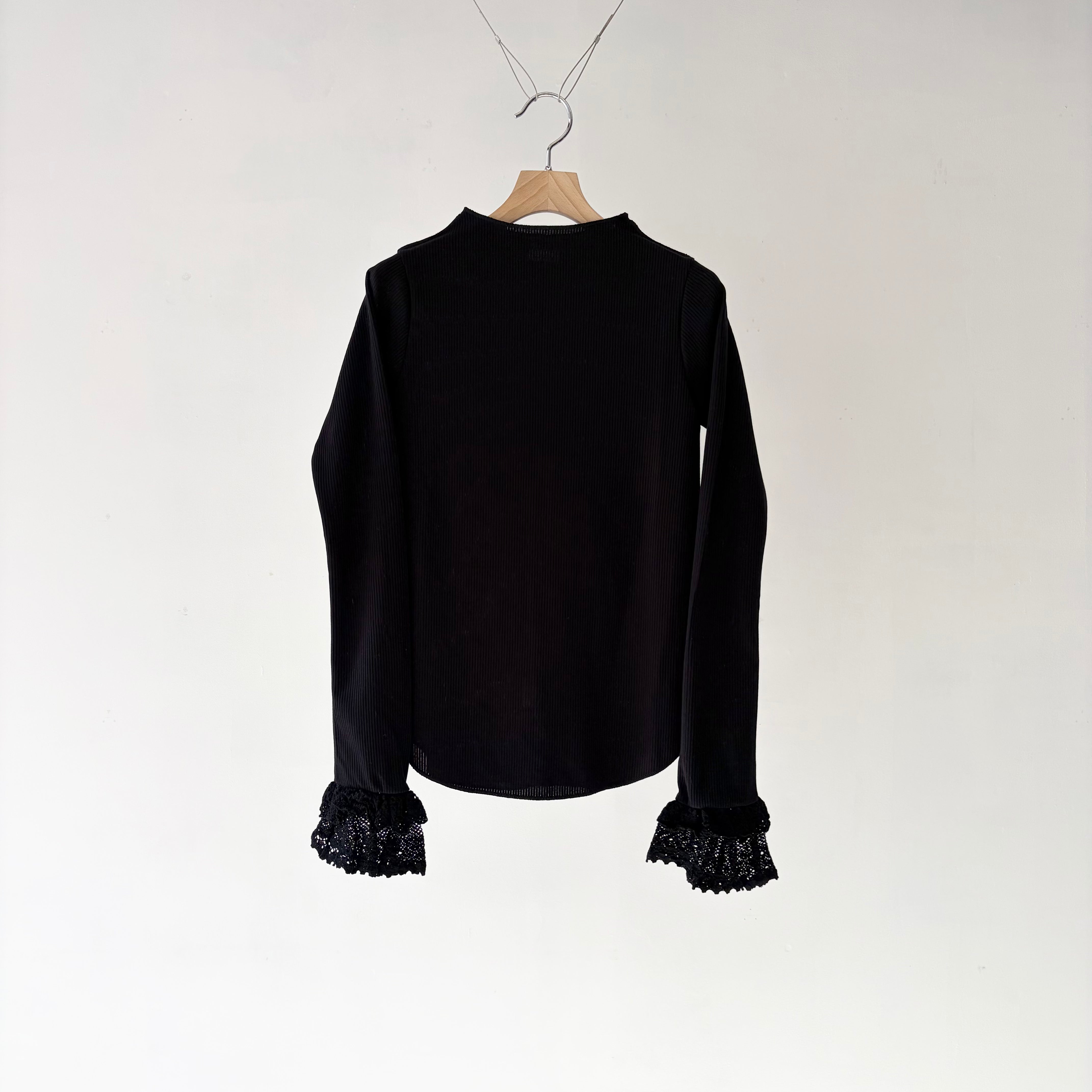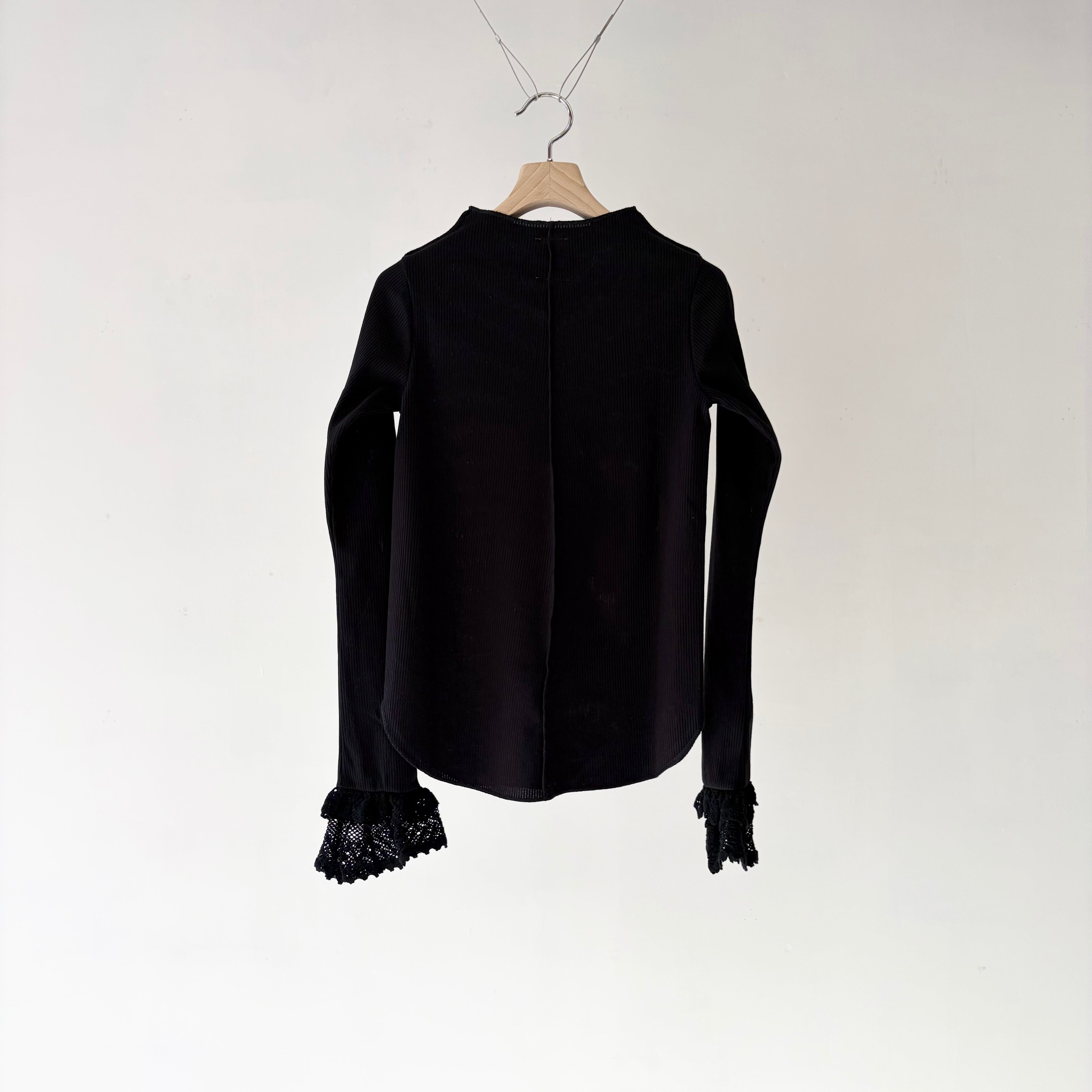 【 RhodolirioN 】RIBBED LACE CUFF PULLOVER TEE / Black