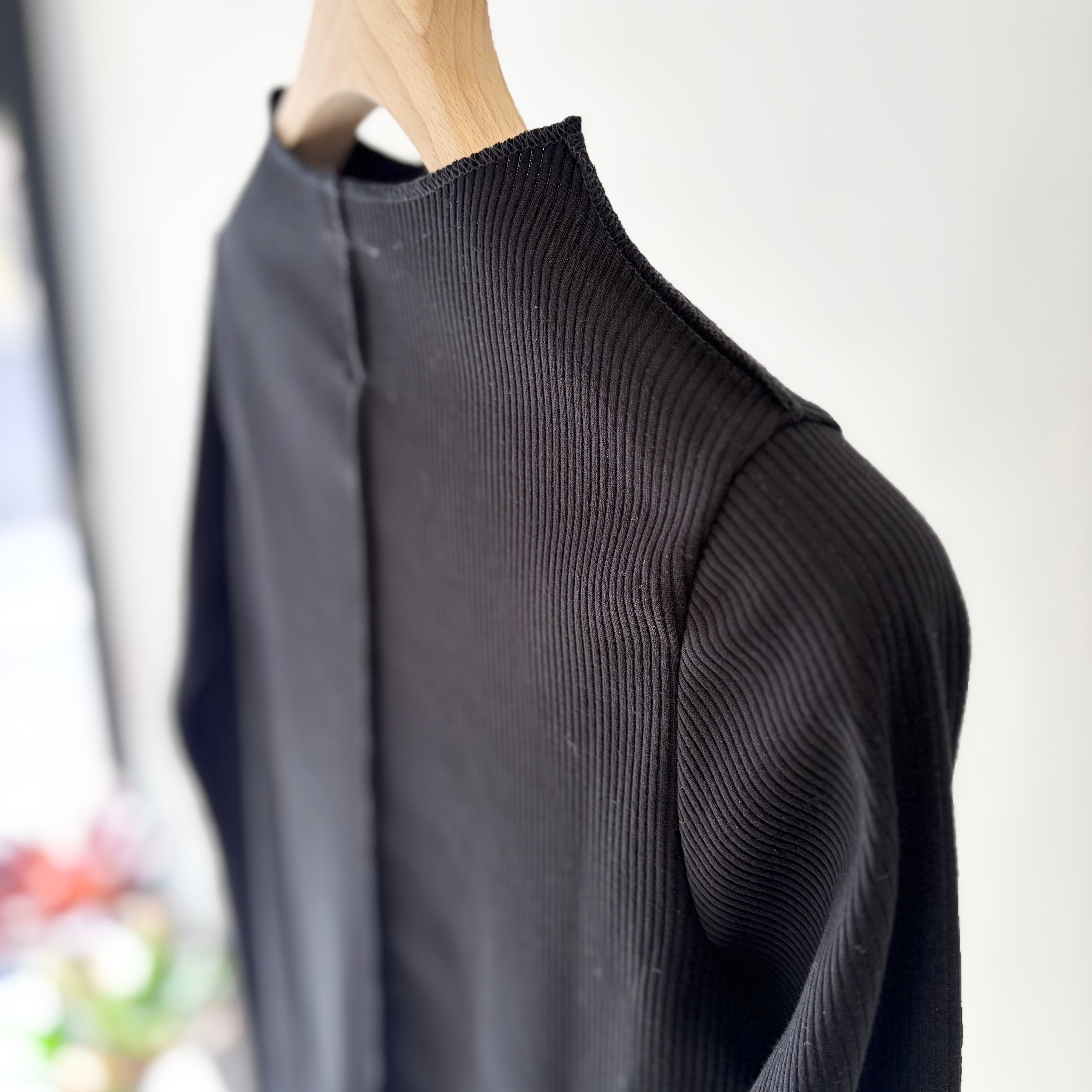適度な肉感とストレッチ性、すっきりとした表情が特徴のテレコ素材をベースに、袖口の異素材ドッキングが特徴のトップス。