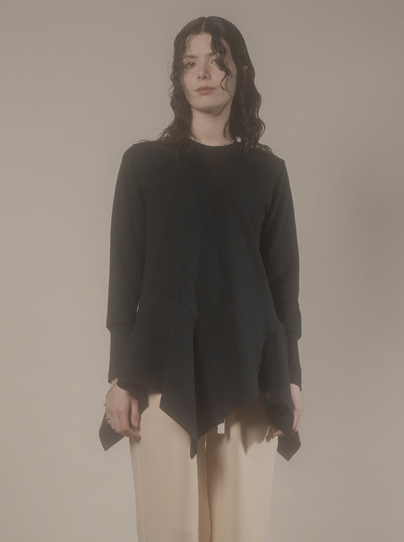 【RURI W. / ルリ】ASYMMETRIC HEM T-SHIRT / Black
