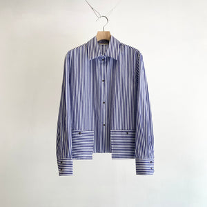 【 HOMMENA 】NO COLLAR HALF SLEEVES SHIRT / Blue Stripe