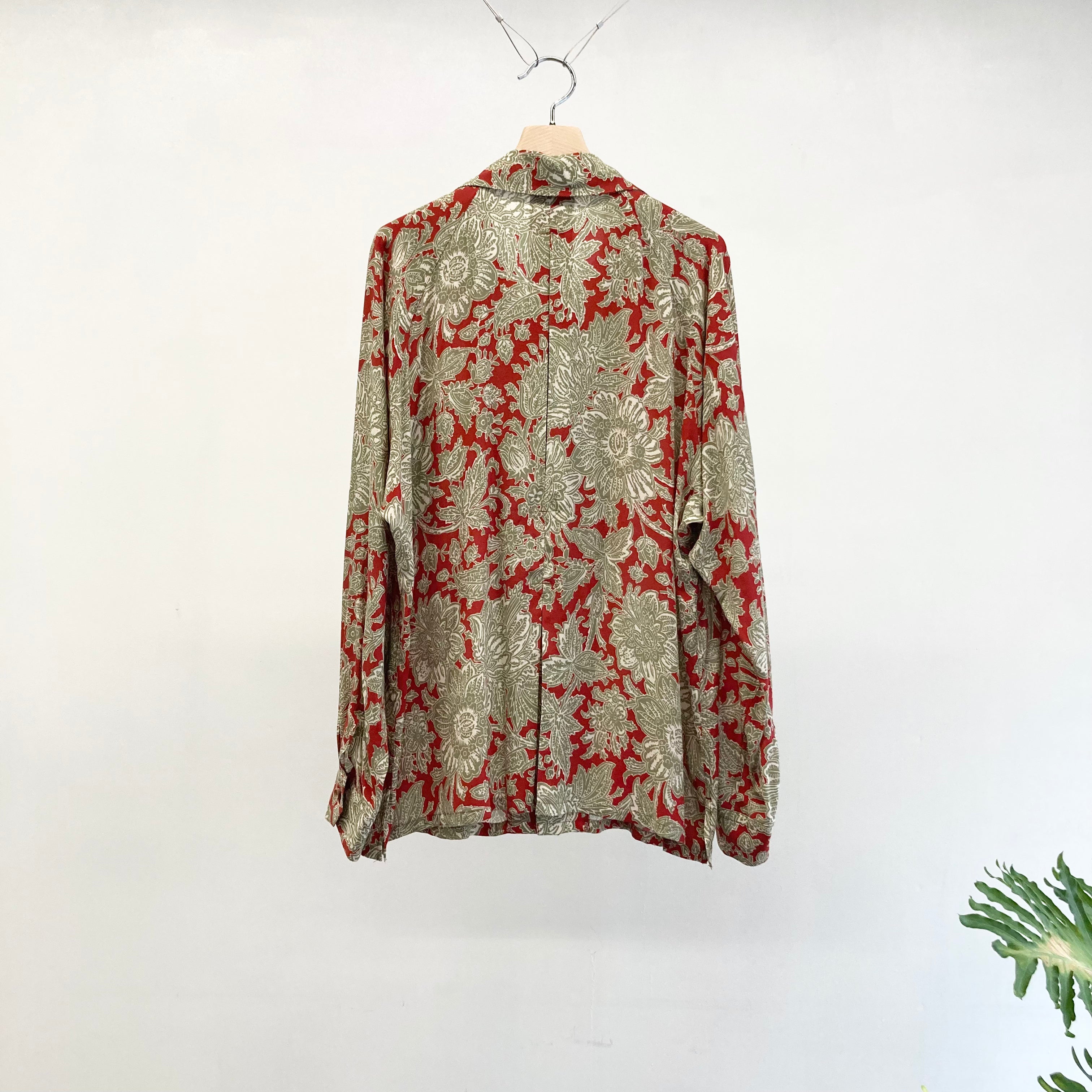 【m's braque】LONG SLEEVE ALOHA SHIRT / Red × Khaki Ethnic Pattern
