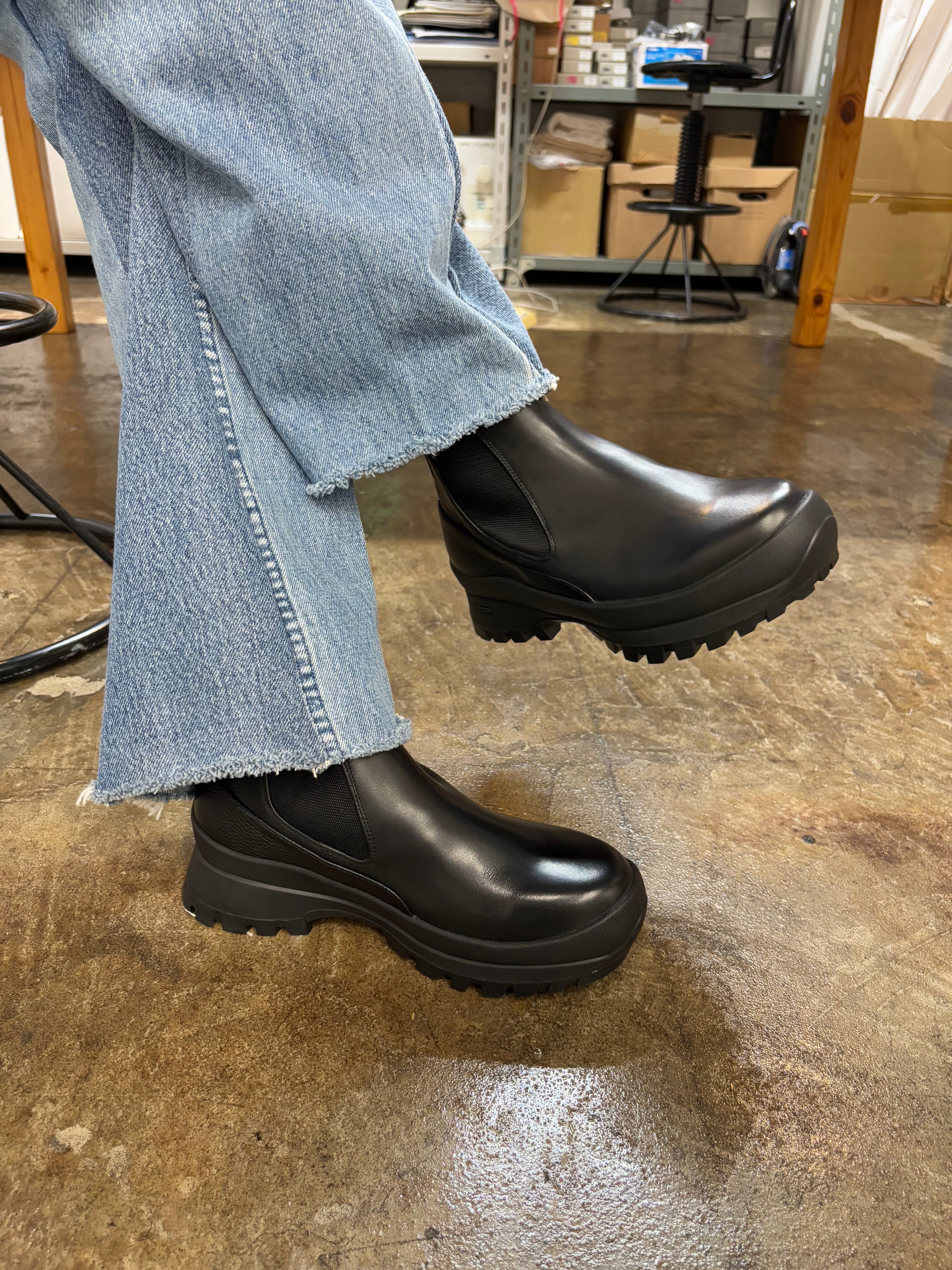 ミリタリーシューズに見られるディテールを取り入れて製作されたサイドゴアブーツ。