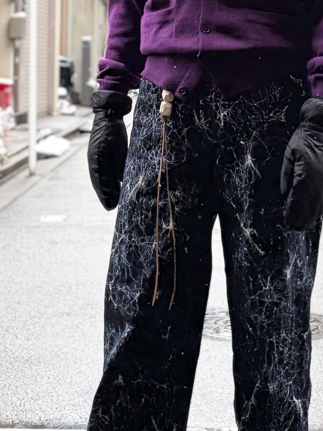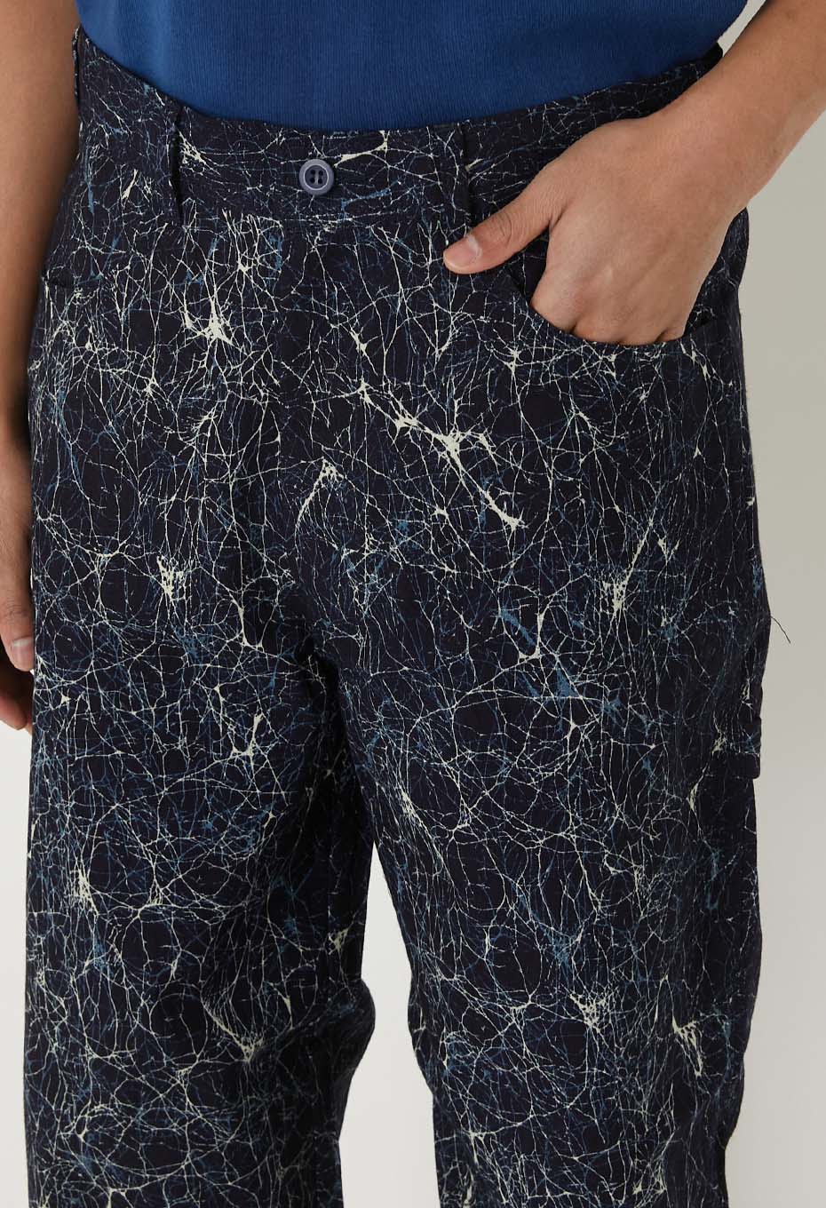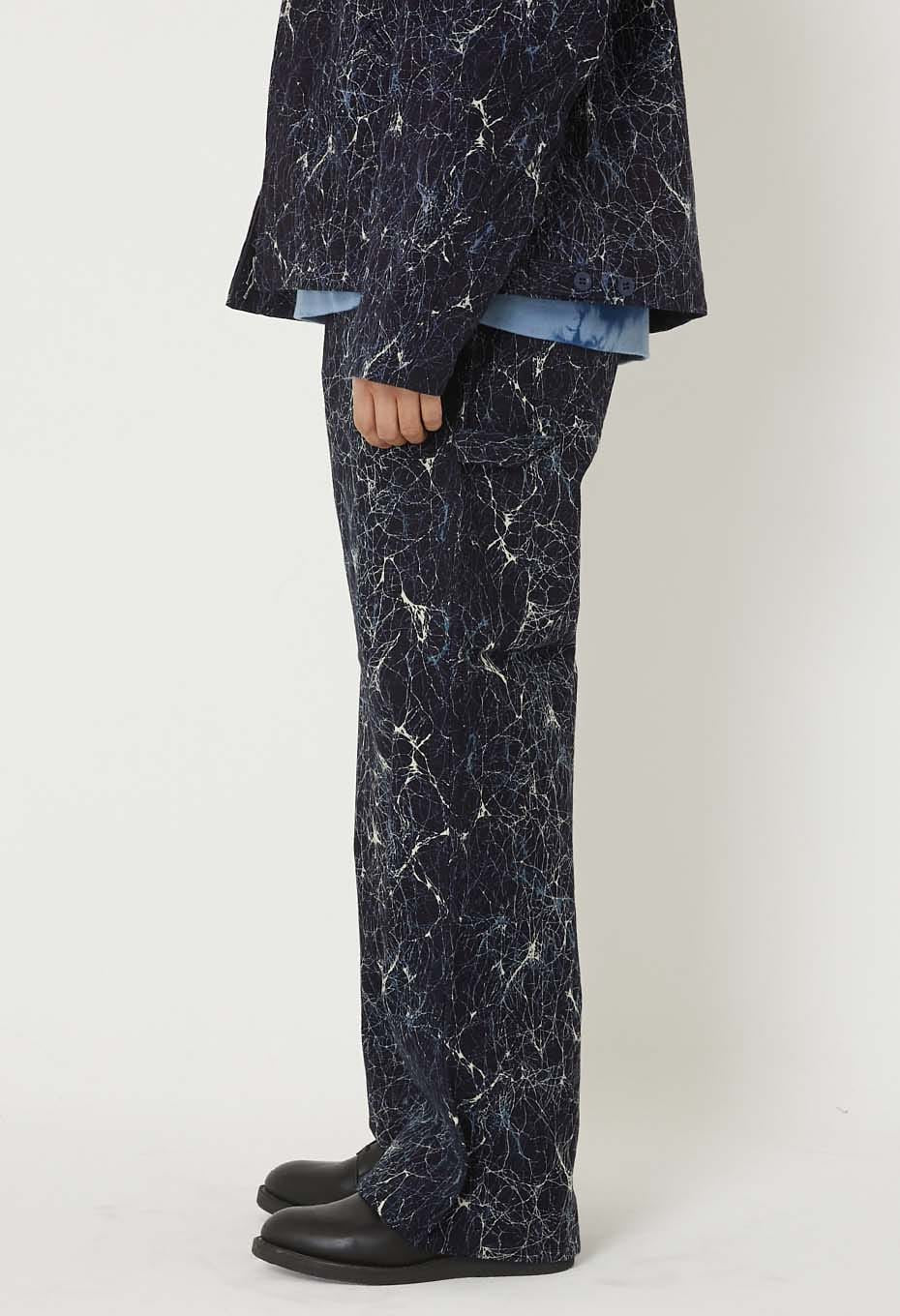 ガラスの表情をイメージするろうけつ染めの様なパターンを着抜プリントで表現。